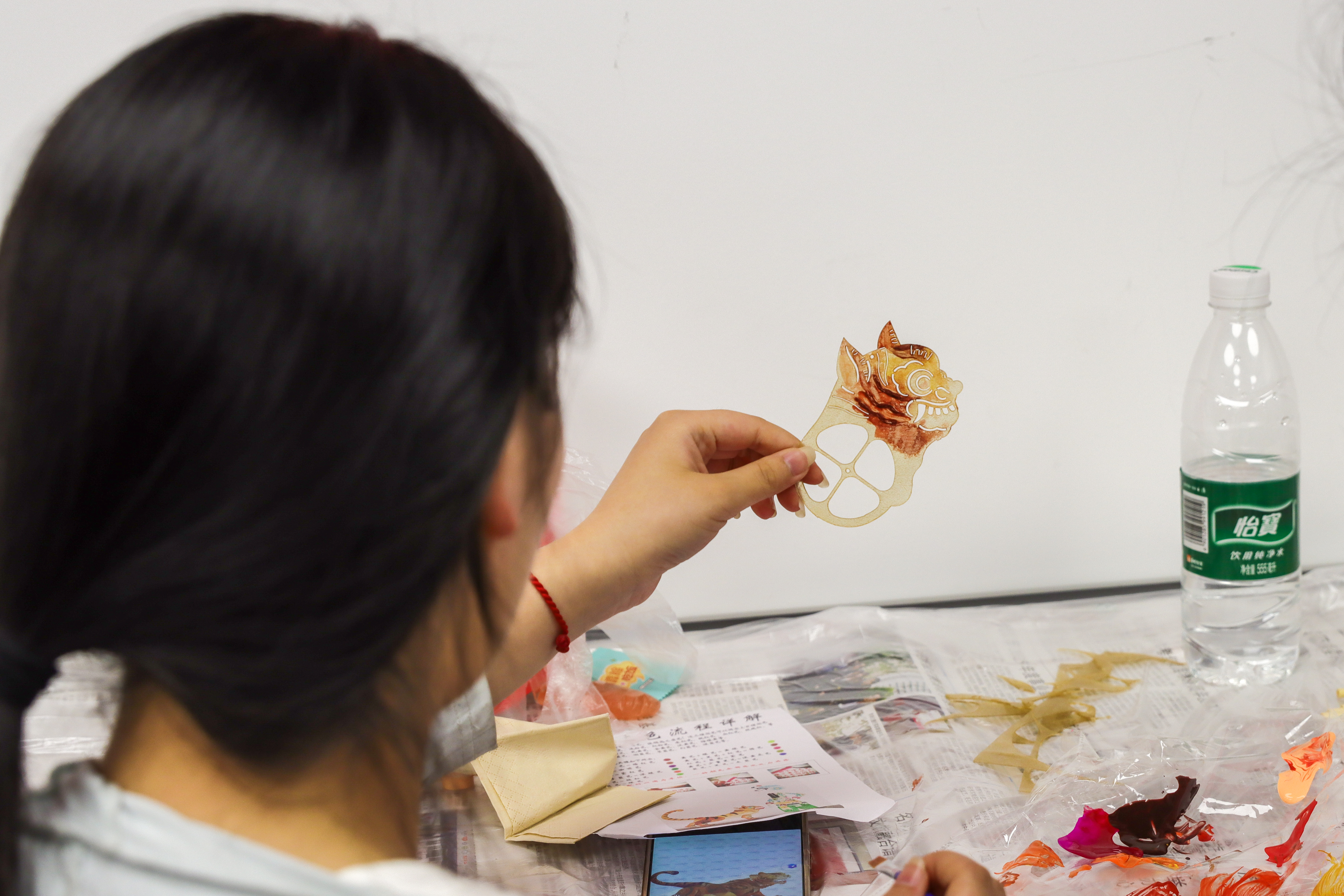 同学们为皮影上色。张欣雨、吕慈摄