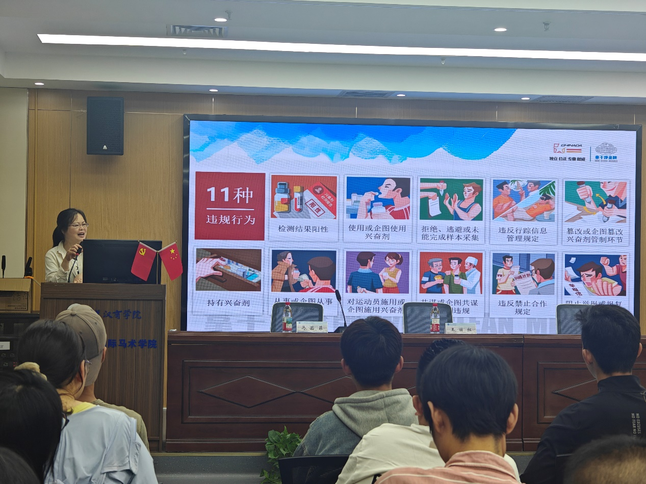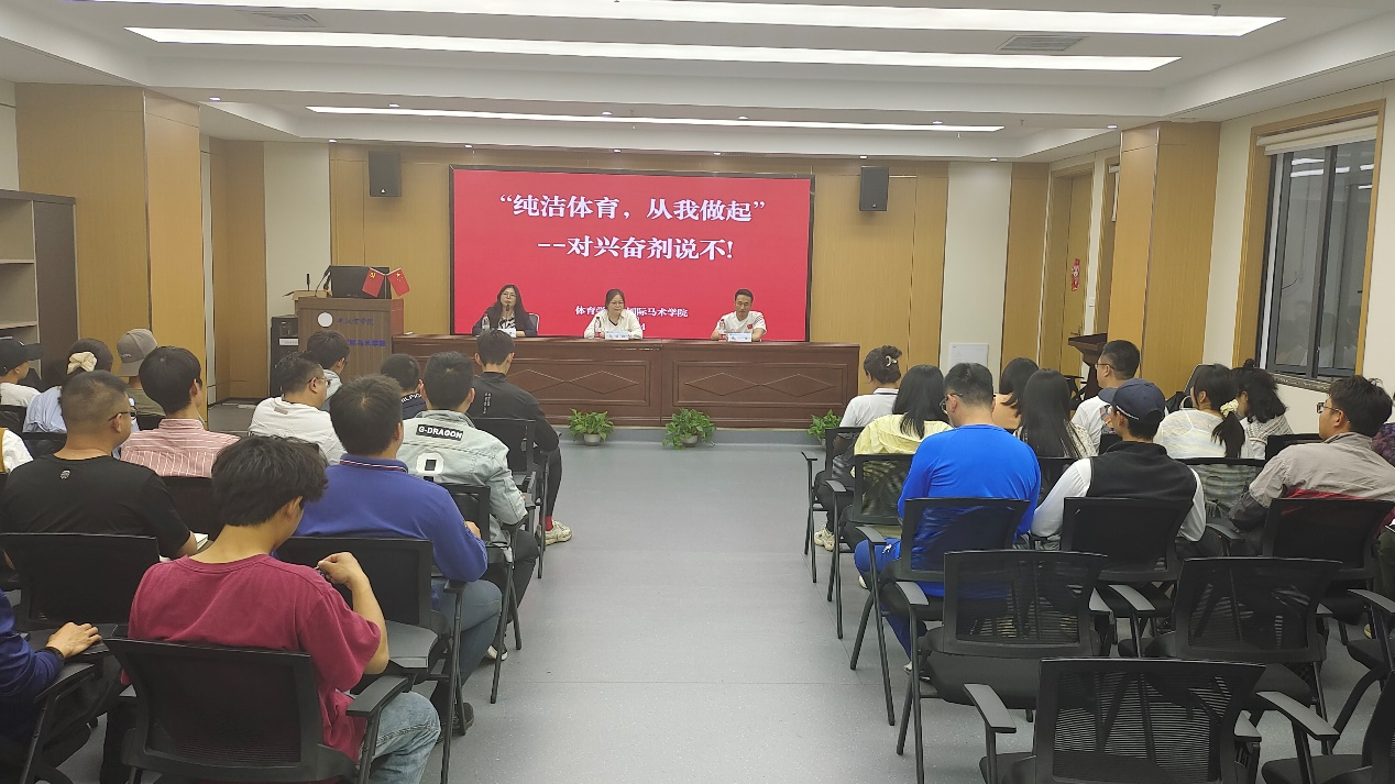 本网讯 4月21日,在体育学院会议室大学举办了一场以“纯洁体育,从我做起——对兴奋剂说不!”为主题的反兴奋剂培训活动。此次培训旨在进一步提升学院师生对反兴奋剂工作的认识,为学校马术队备战全运会,深入贯彻落实中华体育精神,为体育竞赛的公平公正奠定坚实基础。