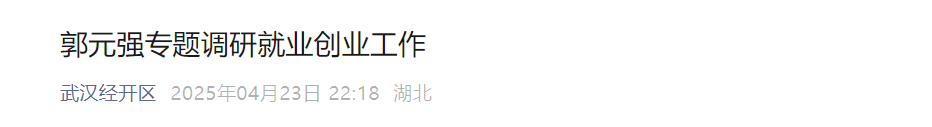 4月23日,省委常委、市委书记郭元强前往青年创业园、人力资源服务机构、高校调研就业创业工作。他强调,要深入学习贯彻习近平总书记关于就业创业工作的重要指示精神,深入实施就业优先战略,健全完善就业创业支持服务体系,大力支持高校毕业生等广大青年在汉创新创业,更好推动以创新创业带动高质量充分就业。