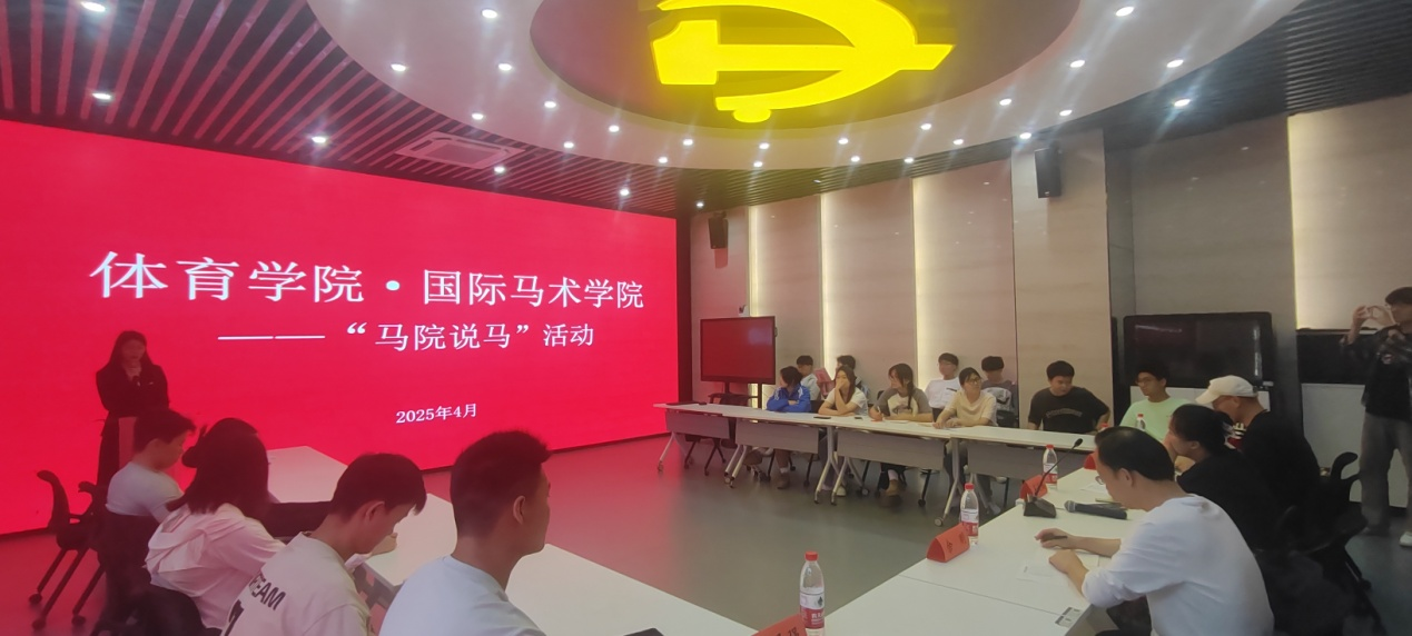 本网讯 4月22日,体育学院·国际马术学院在智慧党建中心开展“马院说马”活动,学院党委书记吴媛媛、副书记余刚、学院组织员曹鹏、学生党支部师生党员参加了本次活动。