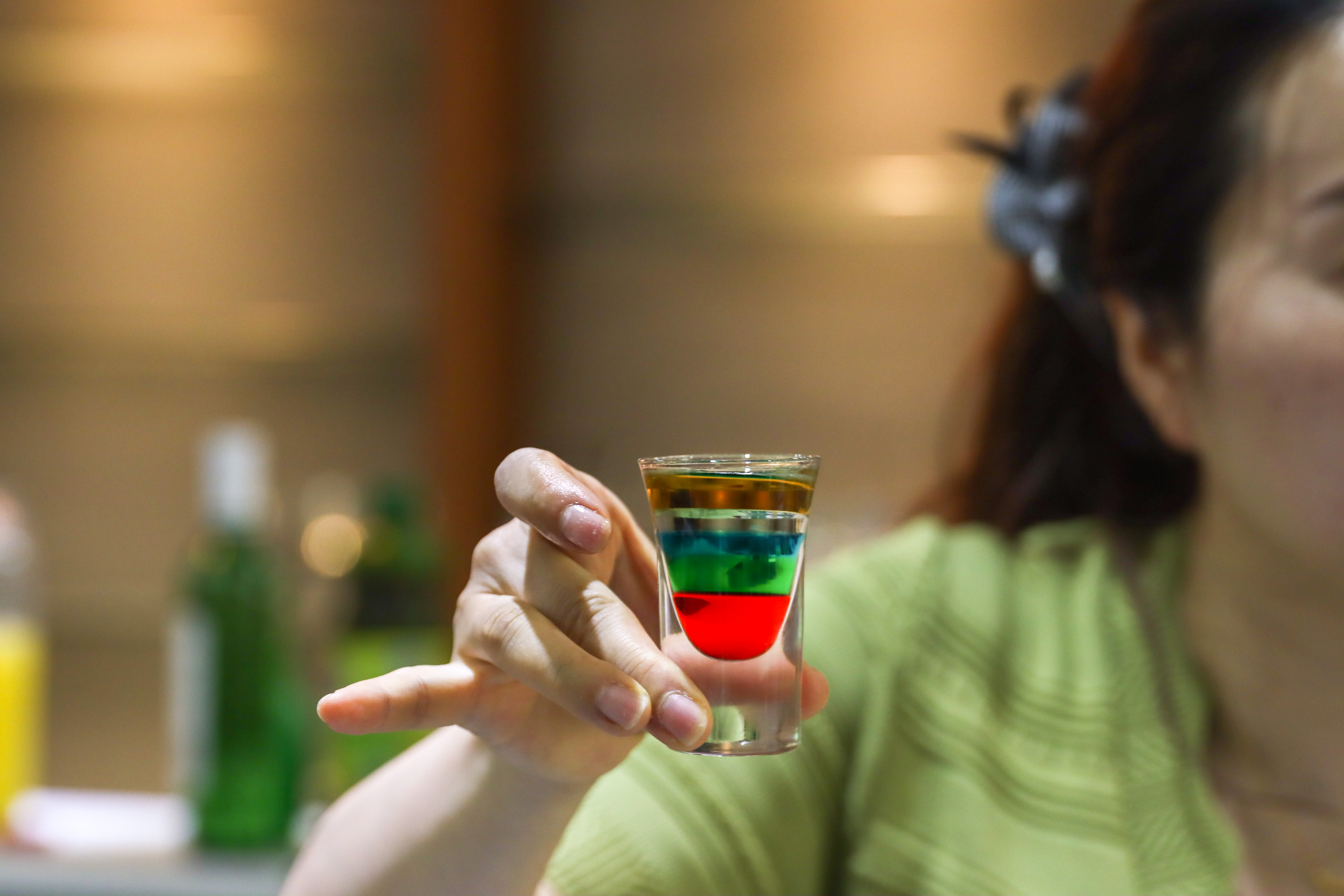 老师示范分层酒。梁咏琪摄