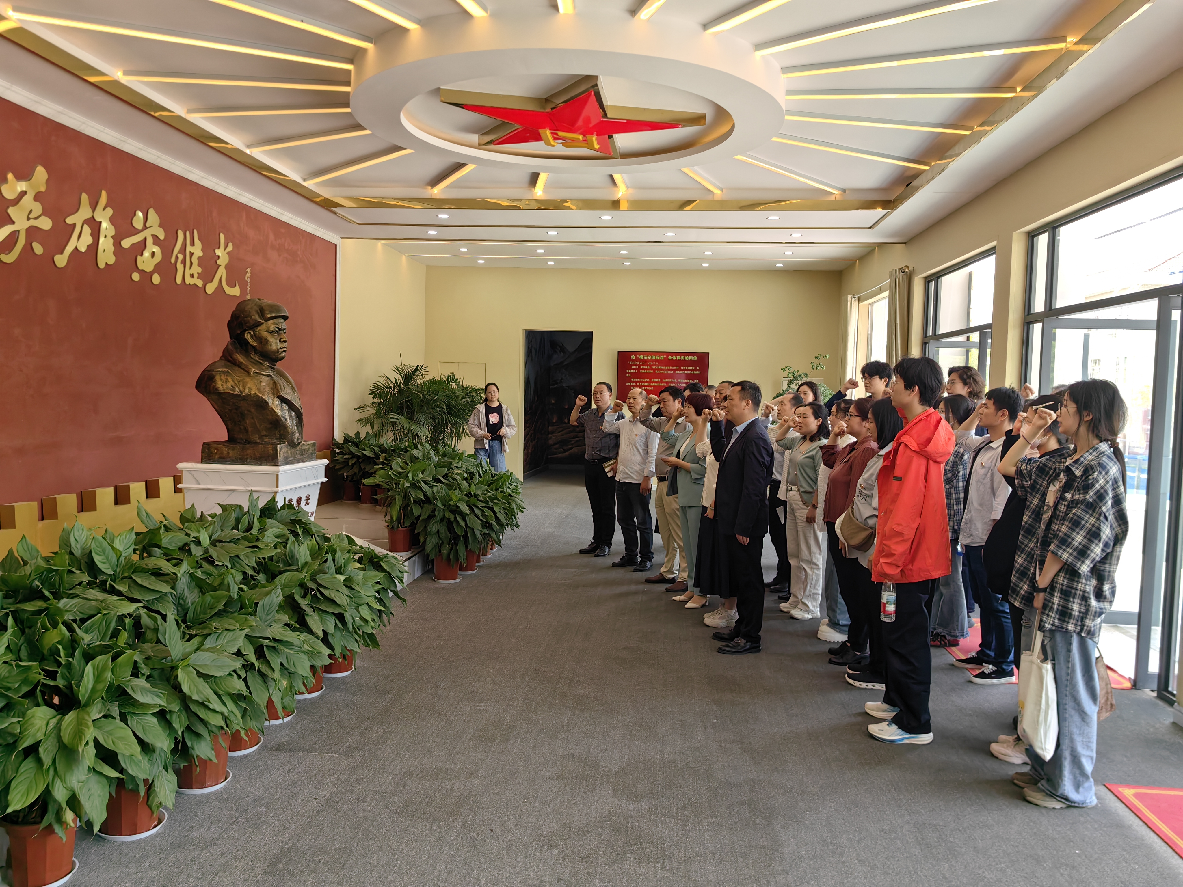 在黄继光烈士雕像前,全体党员列队肃立,深切表达对革命先烈的崇敬与追思。在讲解员的引导下,师生党员依次参观了纪念馆“英雄成长”“血战上甘岭”“精神永存”等主题展厅。通过珍贵的历史照片、文献资料、实物展品及场景复原,全体党员们深入了解了黄继光烈士的光辉历程,深刻感悟“忠于祖国、英勇顽强、勇于牺牲”的黄继光精神。面对鲜红的党旗,全体党员高举右拳,重温入党誓词。铿锵誓言回荡在纪念馆广场,激励党员铭记初心、勇担使命。