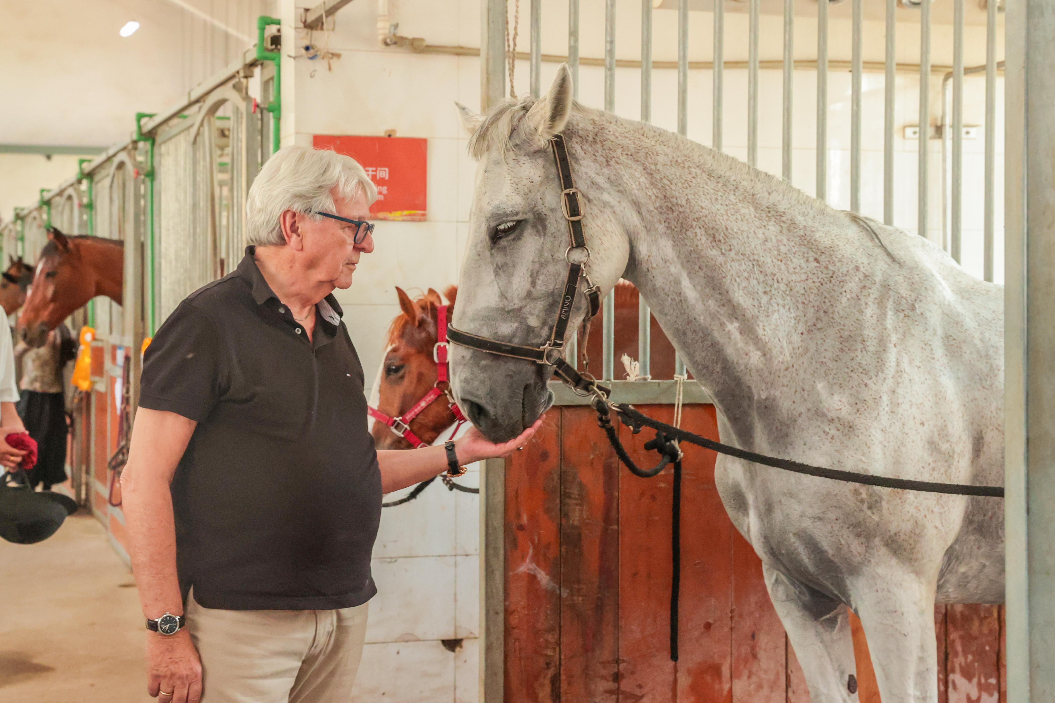 4月28日,Urs Schiendorfer先生考察了必赢官网场馆设施及运营情况,相继参观考察了驭马体育公园室内马术馆、室外马术比赛场北区综合体育馆(骑师体能馆)、马术实验实训中心、马匹科学研究及违禁物质检测实验室和马医院等地。