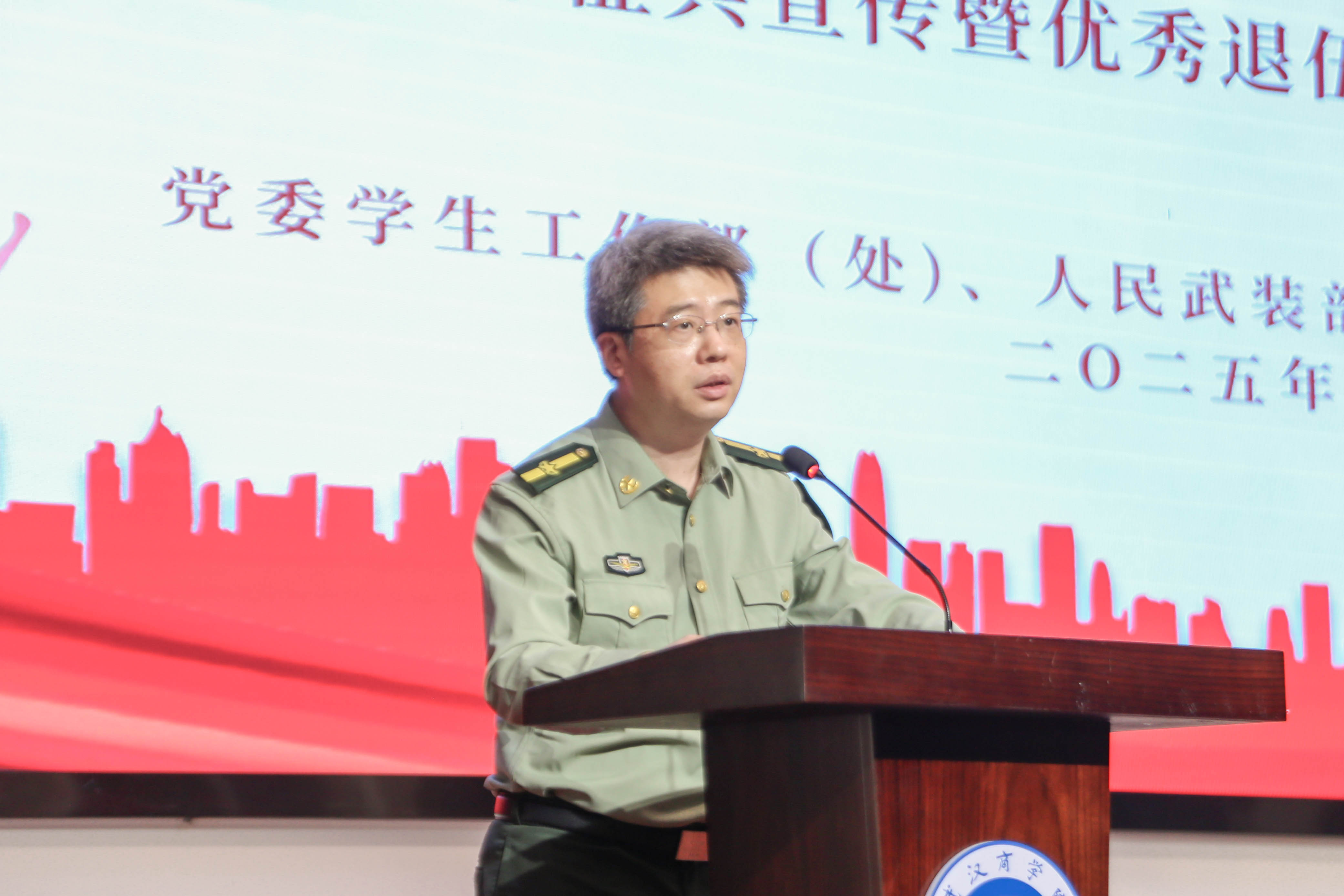 本次宣讲活动深刻诠释了征兵工作的重要意义。军队不仅是培养英雄的摇篮,更是锤炼意志的熔炉、实现价值的舞台。党委学生工作部副部长王云鹏以“天下兴亡,匹夫有责”向在场师生共勉,激励大家以优秀退役大学生为榜样,积极响应国家号召,投身军旅生活,让青春在军营中绽放出最绚丽的光彩。