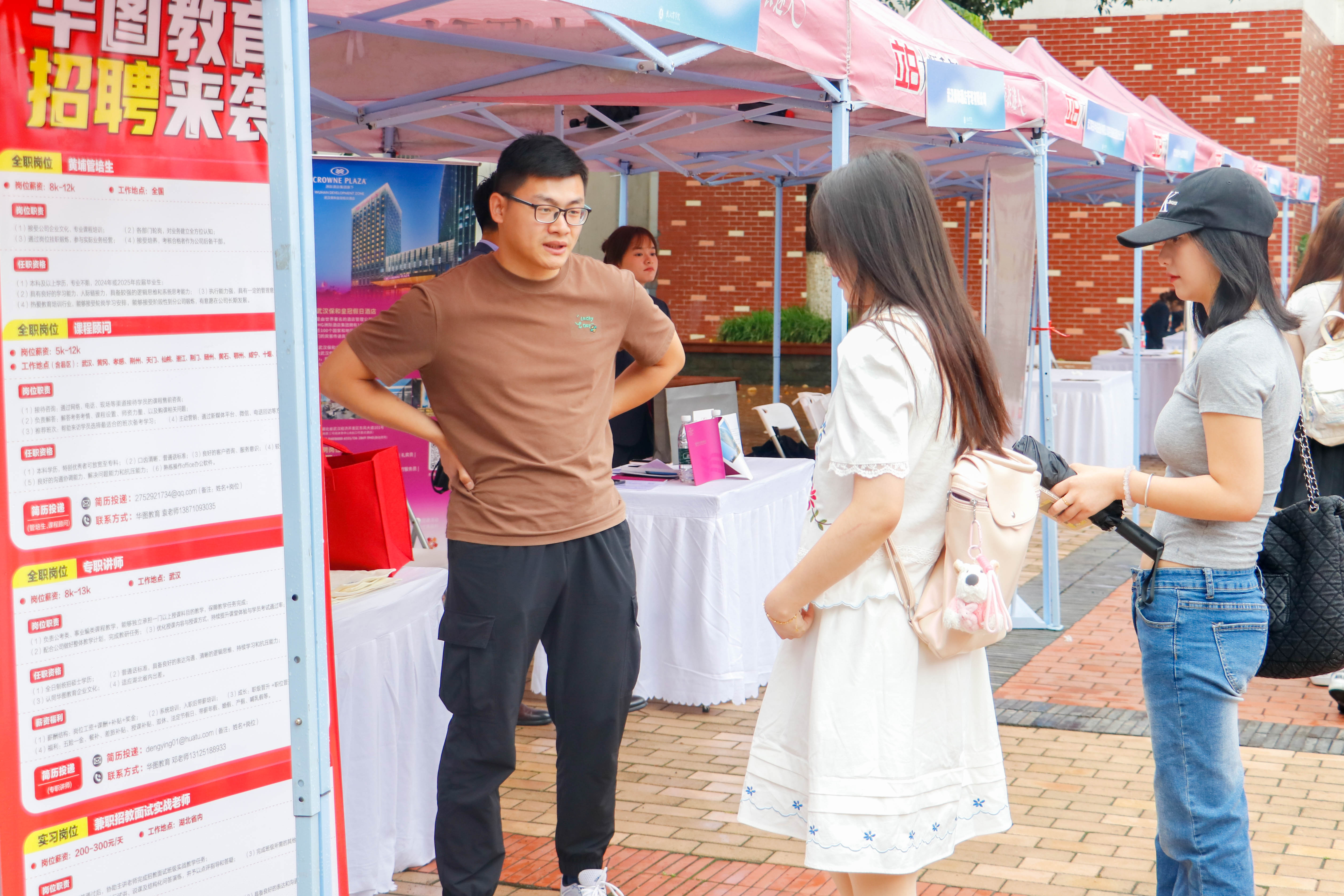 来来往往的人群中也吸引到了一些大一大二的学生,来自2024级会展经济与管理专业的彭阳柳说:“虽然目前不用担心就业的事,但还是希望可以参与其中,多了解就业形势与市场,为未来职业发展做打算。”