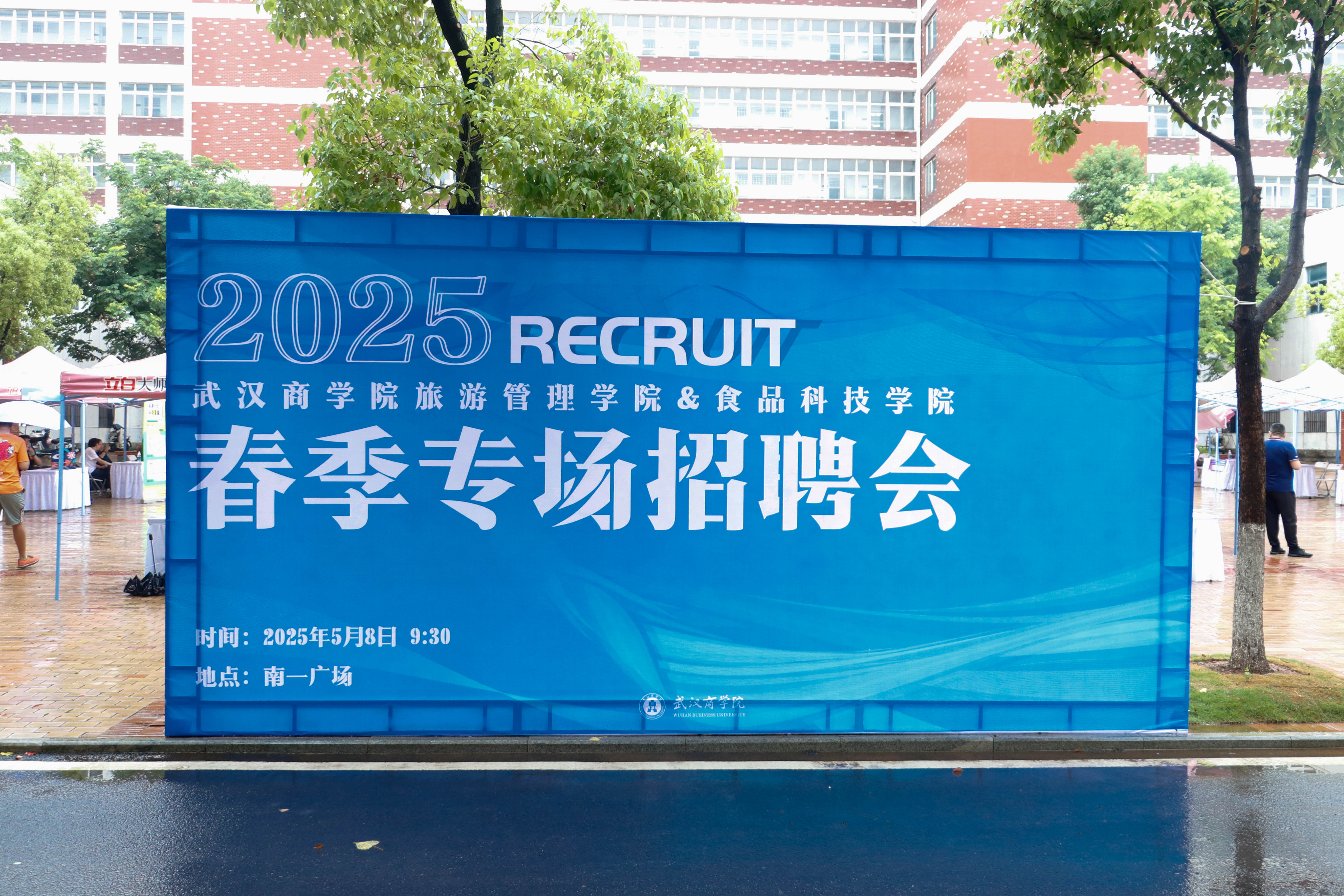 本网讯 5月8日上午,旅游管理学院与食品科技学院联合举办的春季专场招聘会在南一教学楼前举行。尽管天公不作美,但学生求职热情不减,50家企业携酒店会展、生物科技、膳食管理、人力资源等多个领域的岗位前来招贤纳才,工作地点覆盖武汉、宜昌、成都、深圳、北京等多个城市。