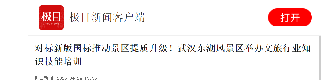高标准推进景区品质提升,打造世界级旅游目的地。4月22日,武汉东湖风景区文化旅游体育局组织开展2025年第一期文旅行业知识技能培训,此次培训覆盖11家文旅行业单位及4个职能部门共108人参加培训,聚焦《旅游景区质量等级划分》国家标准,系统学习景区提质核心要求。