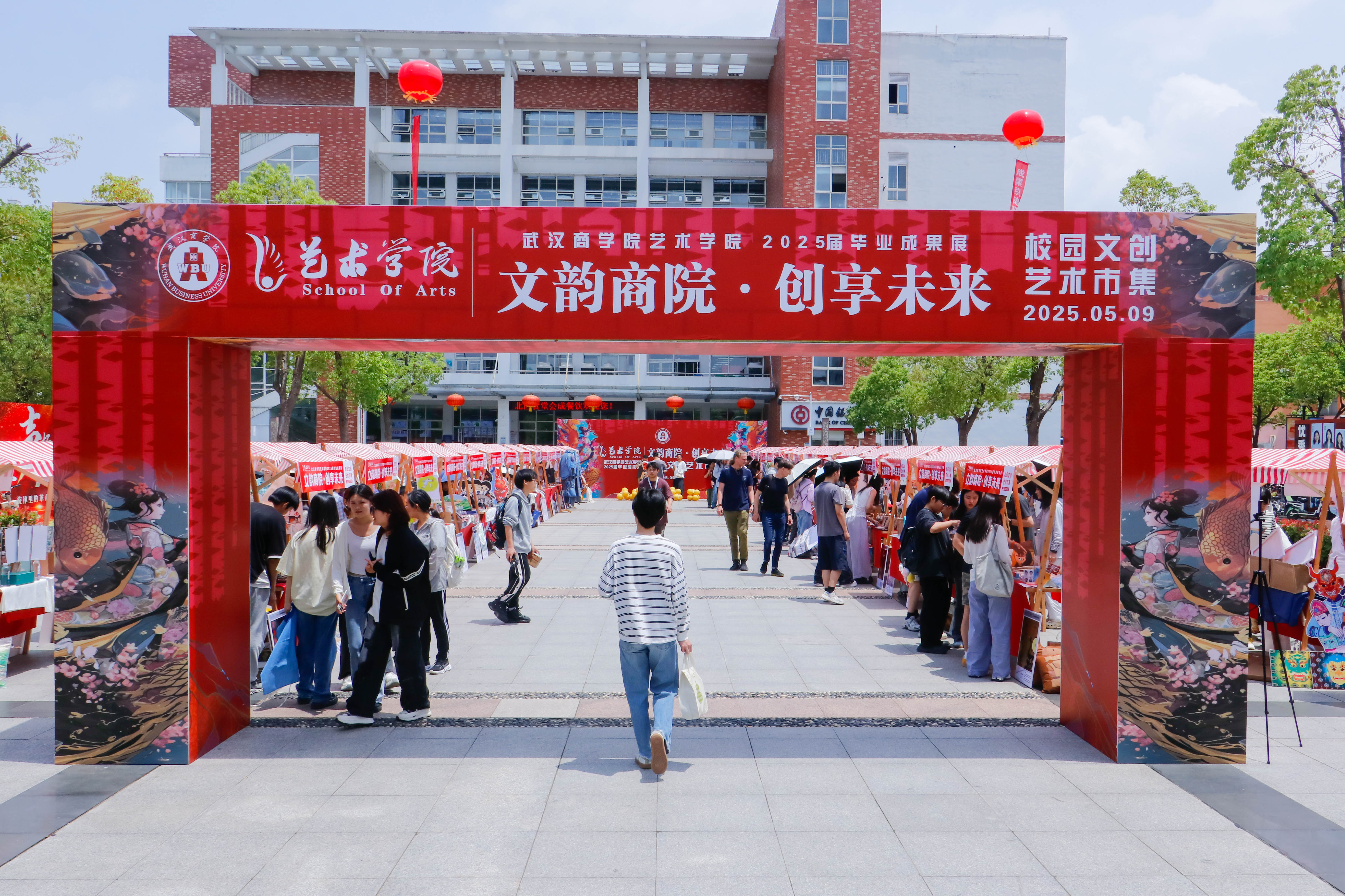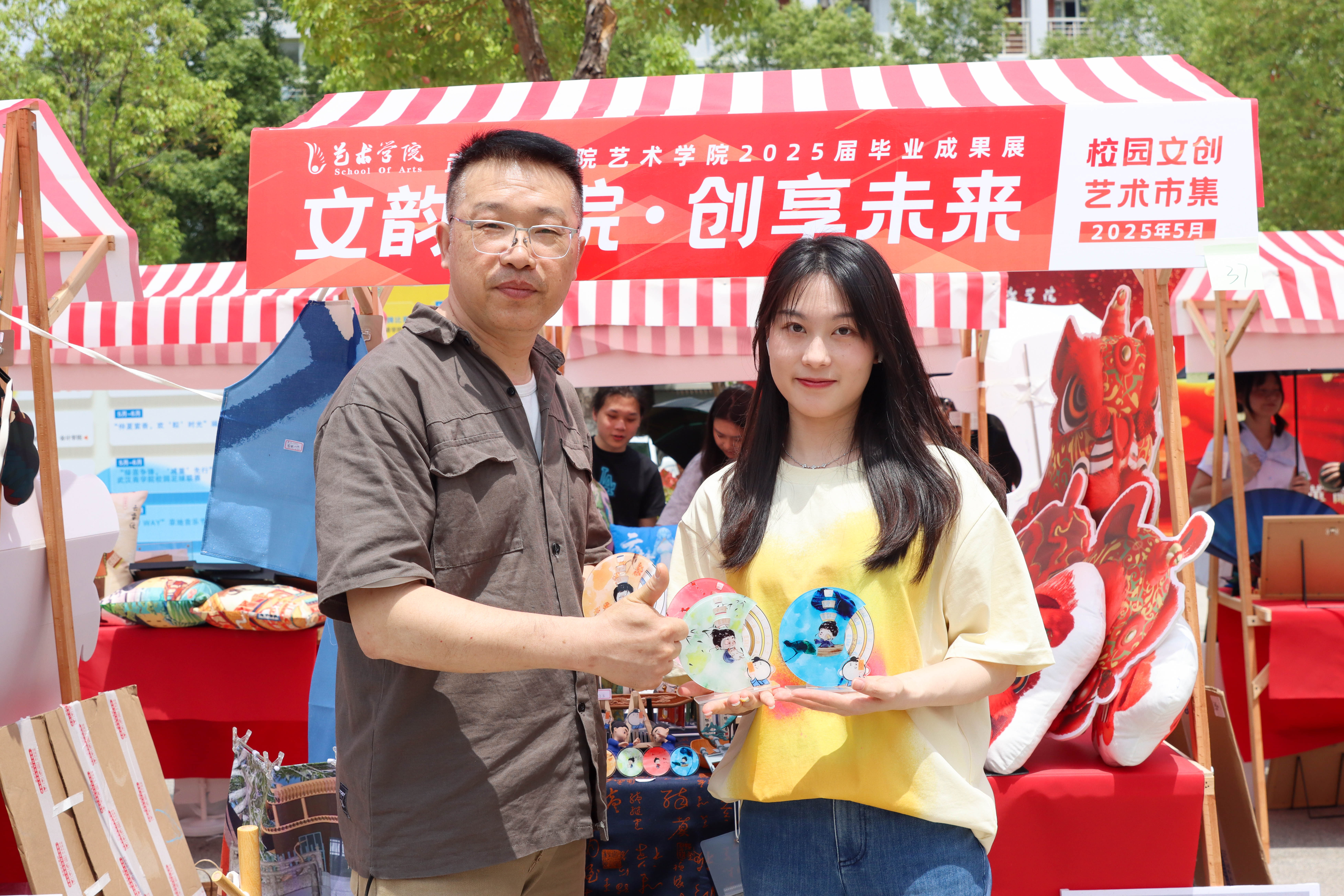 传统文化与现代创意碰撞会擦出怎样的火花?5月9日,必赢官网艺术学院在北区食堂前广场举办2025届毕业成果展,120名毕业生搭建60个展位,将自己的毕业作品面向全校师生展示与销售。校党委书记孟武康,校长彭瑜,副校长刘佳霓、罗双燕,校党委委员、工会主席刘萌莅临市集共同宣布开展。