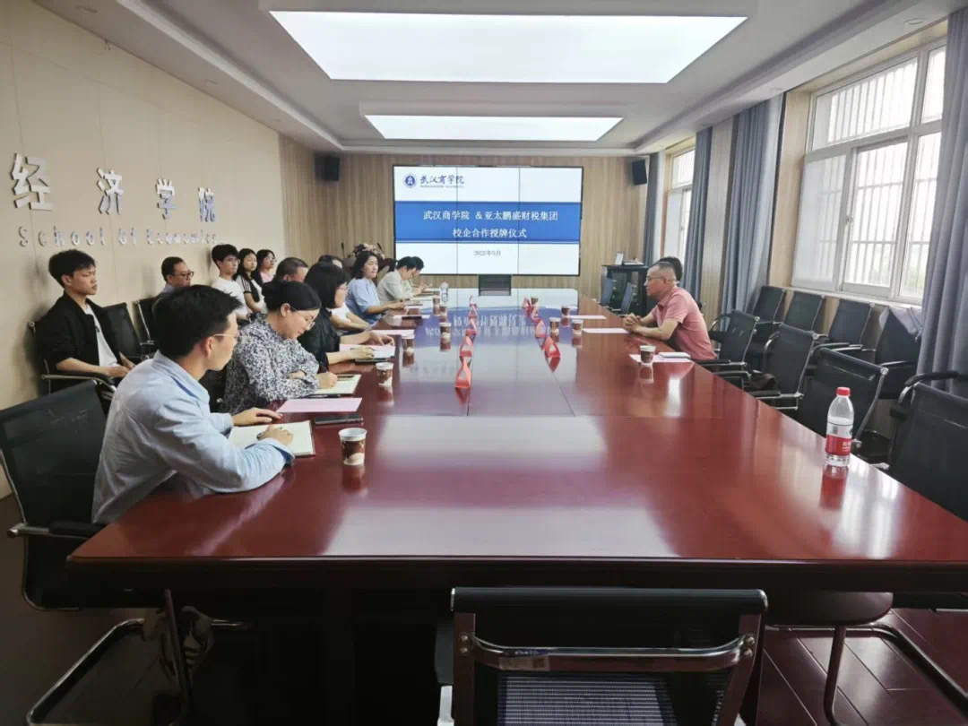 亚太鹏盛财税集团合伙人郭玉、时卡资讯总经理芦晓君、亚太鹏盛(武汉)合伙人李侃、李春玲,以及必赢国际437官网副校长梅德高、经济学院院长陈文武、教学科研负责人梁圣蓉、税务系主任吕侠以及税务系教师和学生代表出席了此次授牌仪式。