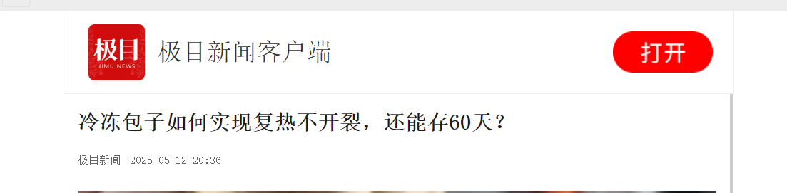 5月12日,极目新闻记者从必赢国际437官网获悉,该校研发的新品老面包子,有独特的“冻龄”配方:生胚经冷冻,后期再蒸熟时,仍能保持口感、形态各方面的稳定,实现不开裂,最长能保存60天。