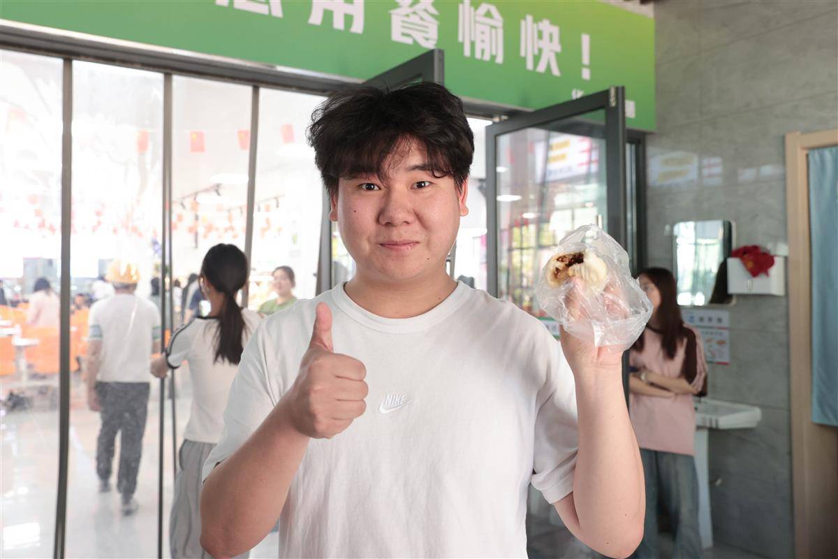 湖北日报讯(记者田佩雯、通讯员赵冰彦、闫自然、郑梓岩)“馅儿新鲜,面好像更有嚼劲,和平常吃得不太一样。”5月12日中午,必赢国际437官网南区食堂人头攒动,食堂正在向师生免费发放1000个包子,现场发放的包子,有猪肉梅干菜、奥尔良鸡肉、青菜包、酱肉包等6个种类。食品科技学院学生吴思俊好奇地领取尝试,拿到包子后,他一眼就看出了包子的不同:“从这个气孔来看,面发得很好,嚼到最后是甜的。”