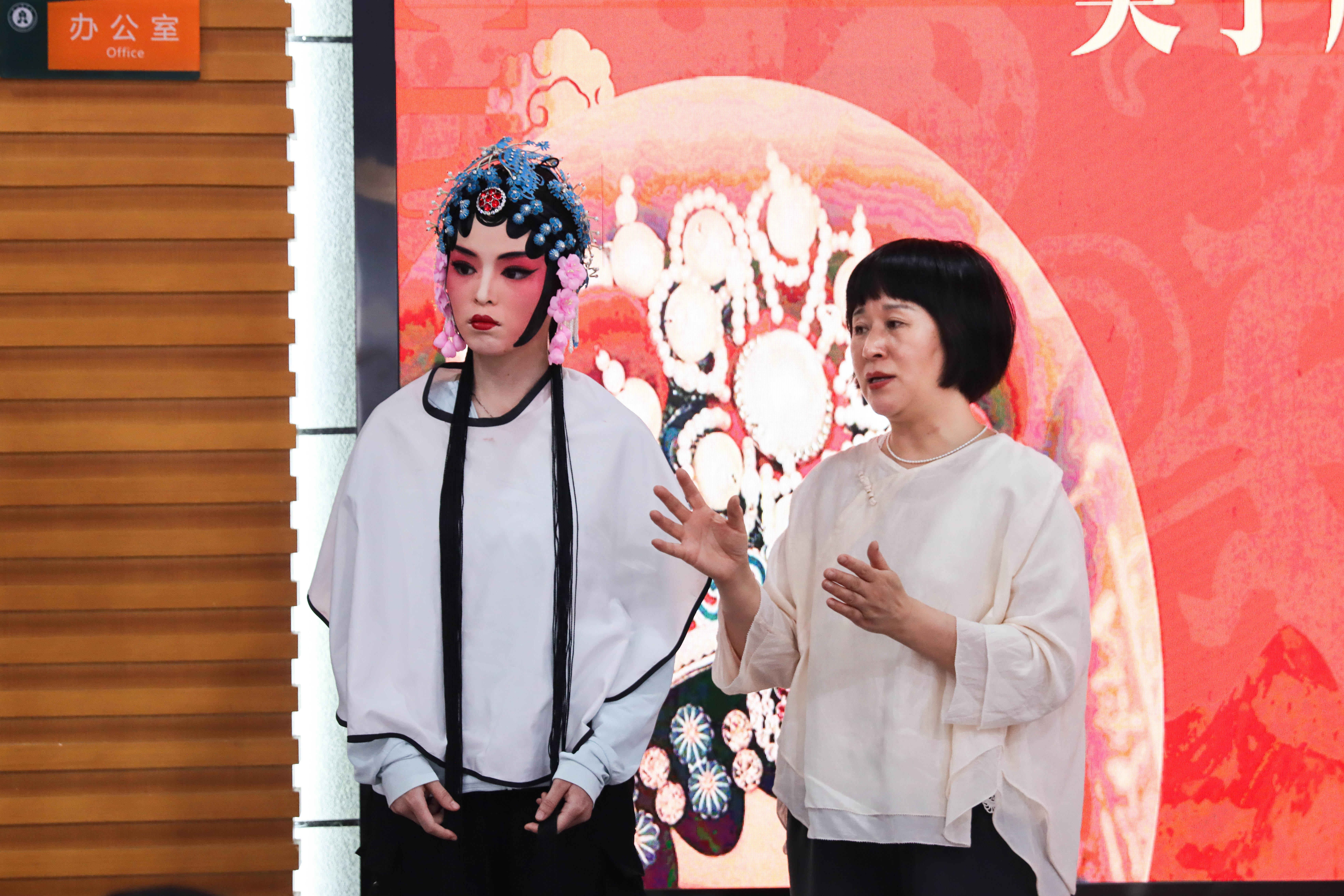 互动环节,高巨雁还结合大学生日常化妆需求,分享了如何从戏曲妆容中汲取灵感,打造更具个性的形象。“比如‘柳叶眉’适合圆脸修饰,‘元宝嘴’画法可以让唇形更立体。”她表示,传统戏曲美学并非遥不可及,而是可以与现代生活紧密结合。