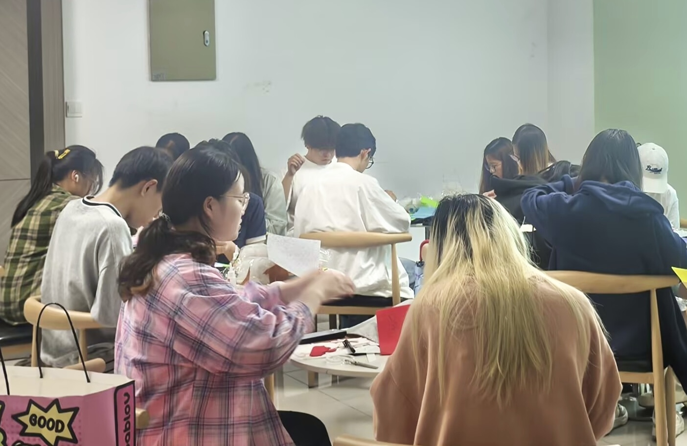 活动伊始,主持人肖邵卓详细介绍了不织布设计、裁剪与粘贴技巧,零基础的同学也能轻松上手。同学们充分发挥想象力,将柔软的不织布变成了各具特色的手工作品,在咔嚓咔嚓的剪布声中释放压力,享受创作的乐趣。