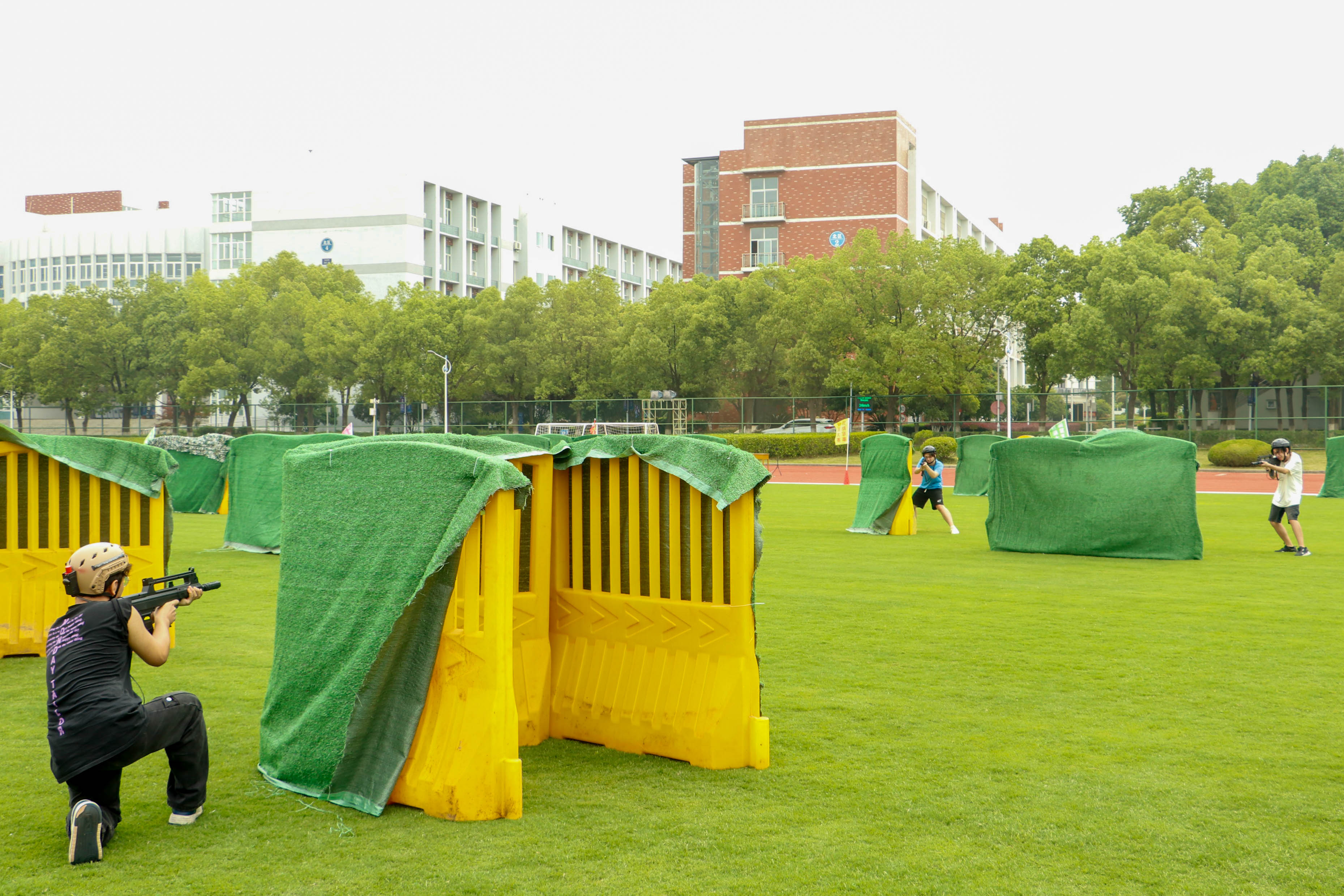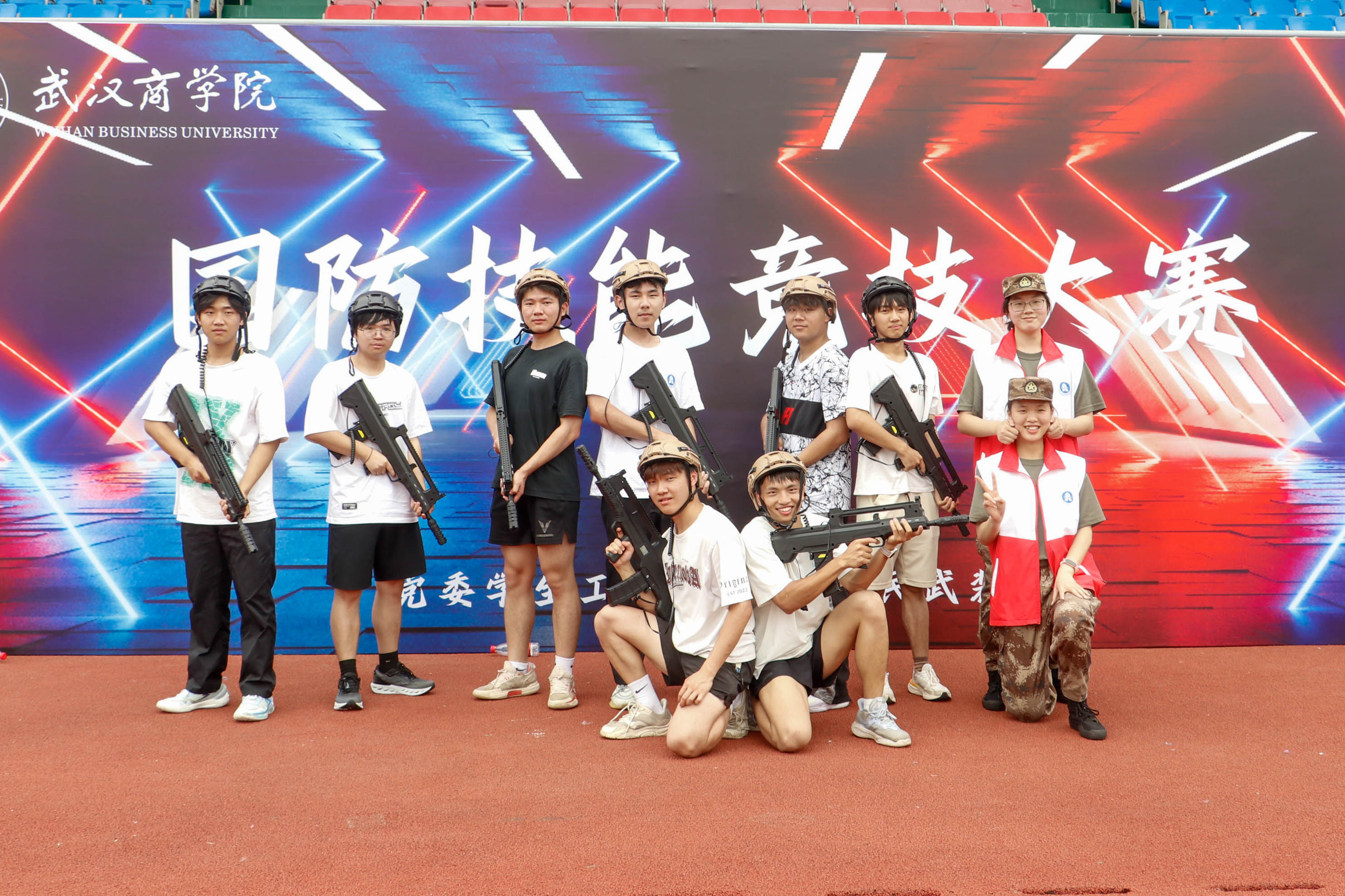 “各队部署的战术太厉害了,硝烟味十足。”真人红蓝模拟对抗赛是整个竞技大赛的焦点。赛场上,红蓝双方时而隐蔽在掩体后,耐心等待时机;时而快速出击,对敌方阵营发起突袭。每一次关键射击、每一次巧妙的战术迂回,都引得现场观众阵阵欢呼。最终会计学院“‘会’人一步”队凭借出色的表现,一路过关斩将,摘得本次红蓝真人对抗赛的桂冠。队员谢锦泽分享:“比赛不仅考验个人体能,更需要团队信任与战略规划,我们深刻体会到了协同作战的重要性。”