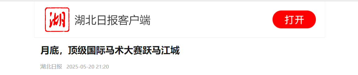 赛事举办期间还将举办马术嘉年华、青少年马术体验营等系列活动,为武汉市民提供更多体育消费新场景,以激发武汉这座城市的体育消费新活力,提升体育消费新能级。
