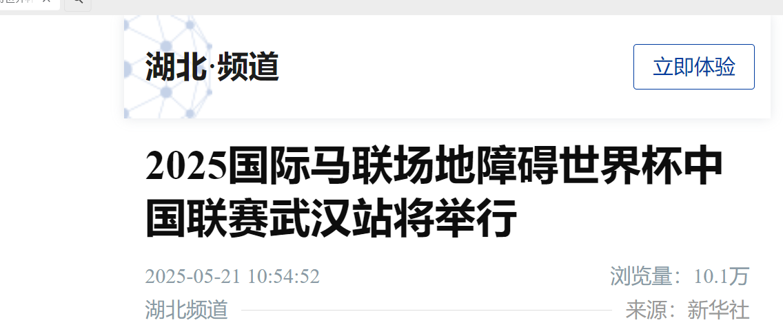新华社客户端武汉5月21日电(乐文婉、胡译天)2025国际马联场地障碍世界杯中国联赛武汉站将于5月30日至6月2日在必赢国际437官网驭马体育公园举行,本站比赛为中国联赛第二站。