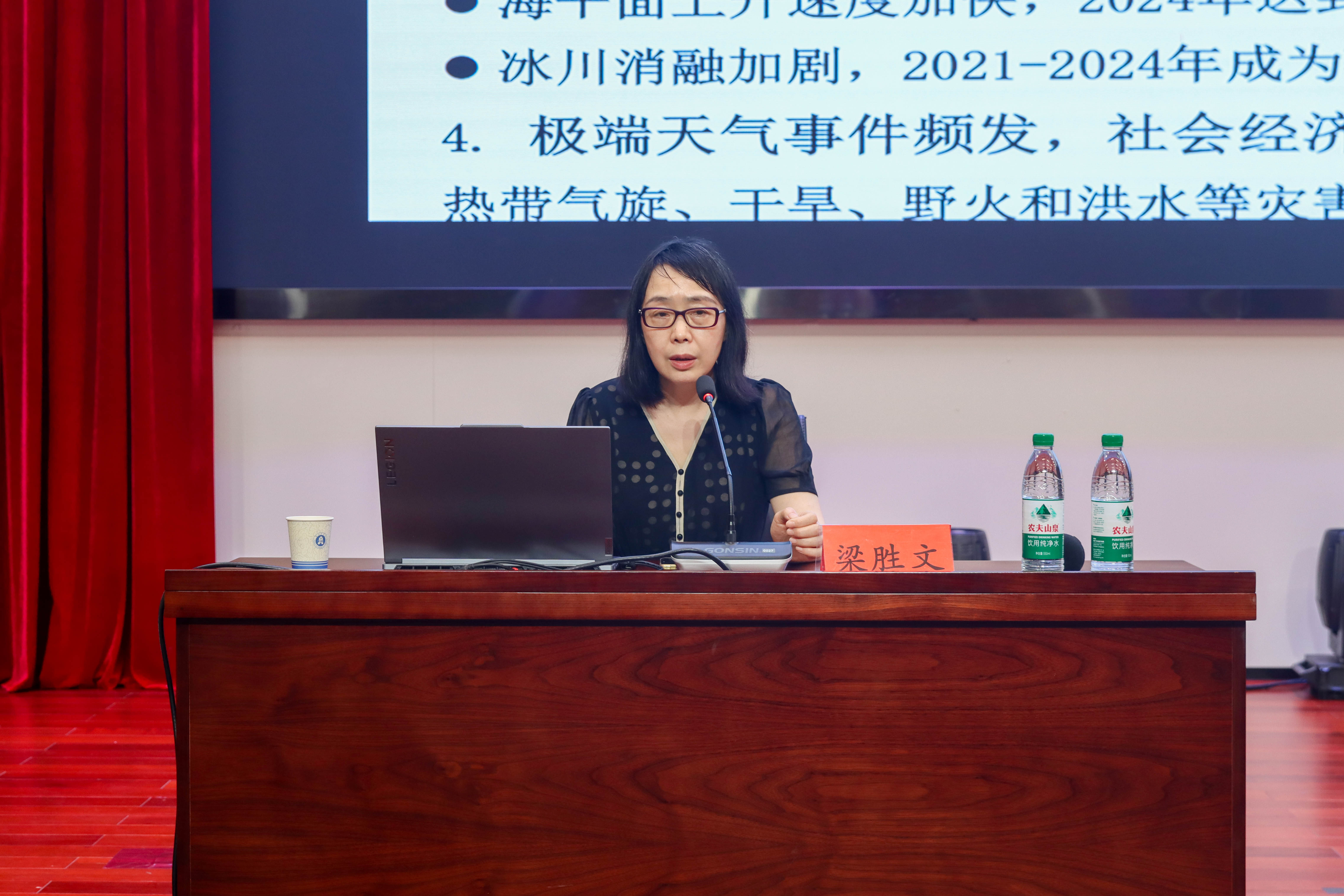“人类活动对气候的变化有没有影响?”“逐步淘汰还是逐步减少?”“全球气候变化该如何改善?”一张张图表、一串串数据向在场的师生展示现代环境状况的严峻。“但大家也不要太过恐慌,《联合国气候变化框架公约》等多个国际公约早已签署,我国一直以来也在付诸行动与贡献。”梁胜文教授说。