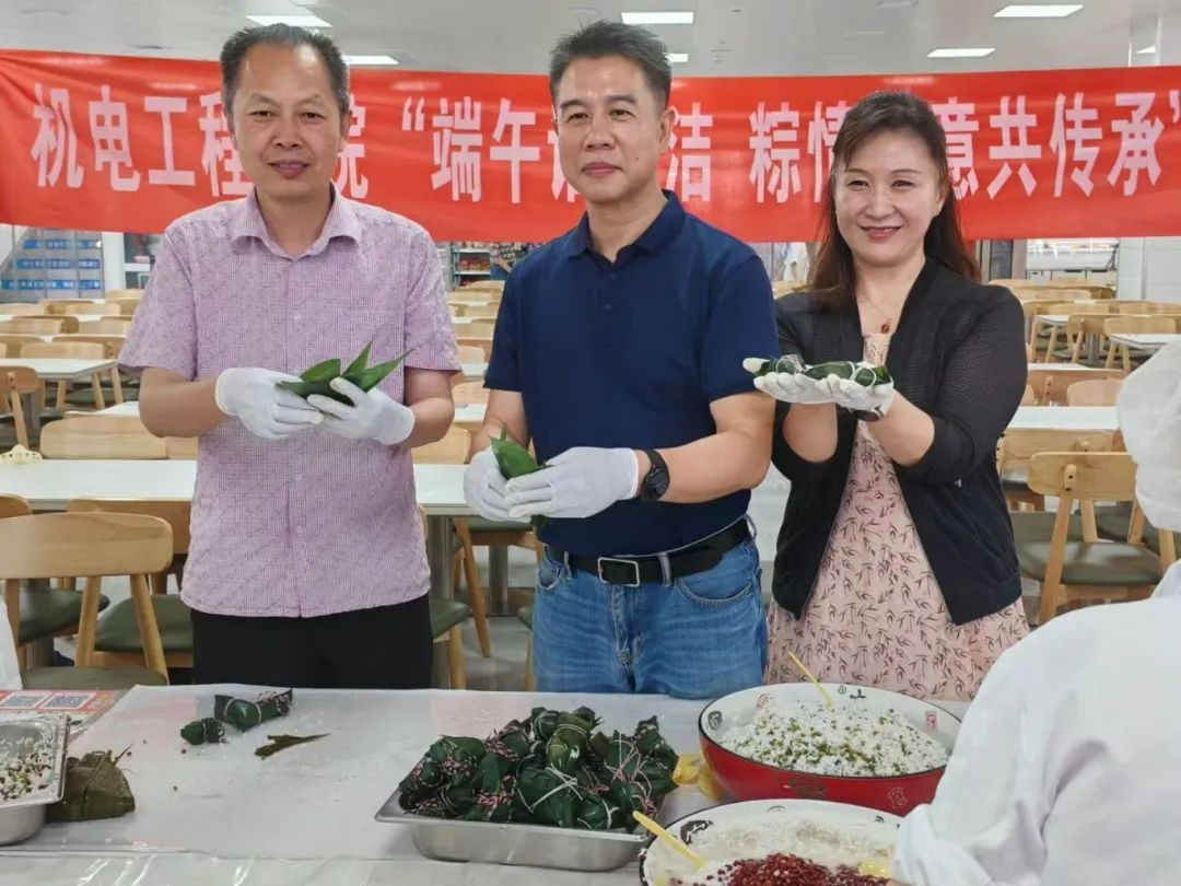 本网讯 为弘扬中华优秀传统文化,深化廉洁教育,营造崇廉尚洁的校园氛围,5月28日,机电工程学院在南区食堂开展了“端午话廉洁 粽情粽意共传承”活动。校纪委副书记李阳、机电工程学院党委书记张奔、院长姚层林、党委副书记刘李军,与25名同学一起在粽叶飘香与艾草清芬中,体验传统习俗,共话廉洁清风。