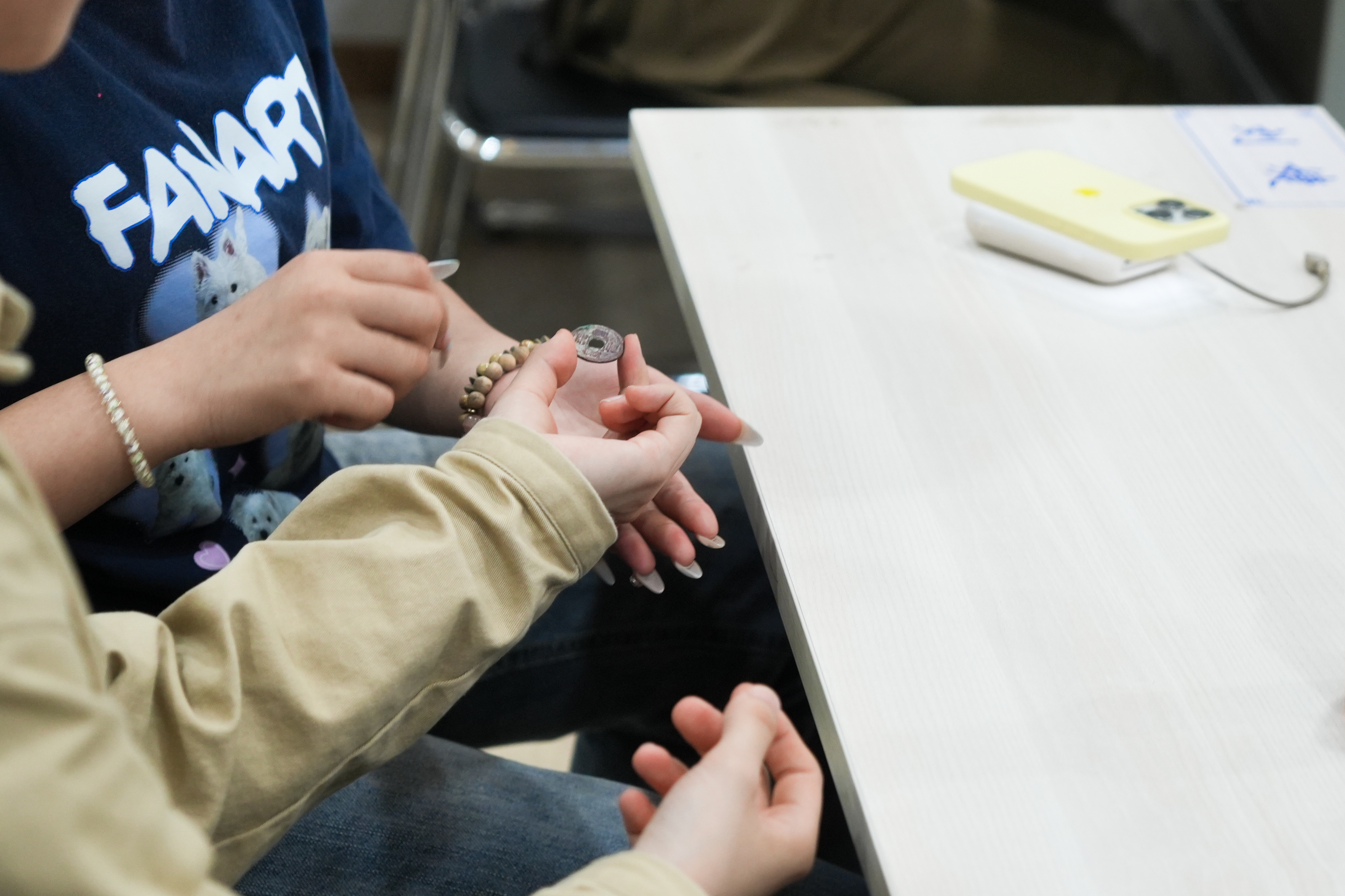 讲座伊始,主讲人毛雨晴介绍了我国古代商业文化发展历程,从钱币的发展开始带着大家穿越到古代。毛雨晴分享说:“从一开始的以物易物到后来交子纸币的出现,商业的发展从涓涓细流到磅礴起伏,商业文化从来不只是薄薄的钱币那么多。”她带了一枚唐宋的“开元通宝”铜钱币让现场的同学们穿越观看,钱币表面已经腐朽,但是拿在手里仍然可以感受到它沉甸甸的分量。2024级物流管理专业罗芷璇被这个“老古董”吸引住,将它放在手里细细观察“平常只会在博物馆隔着厚厚的玻璃看见钱币,这是我第一次接触,比我想象中的钱币更有质感。”