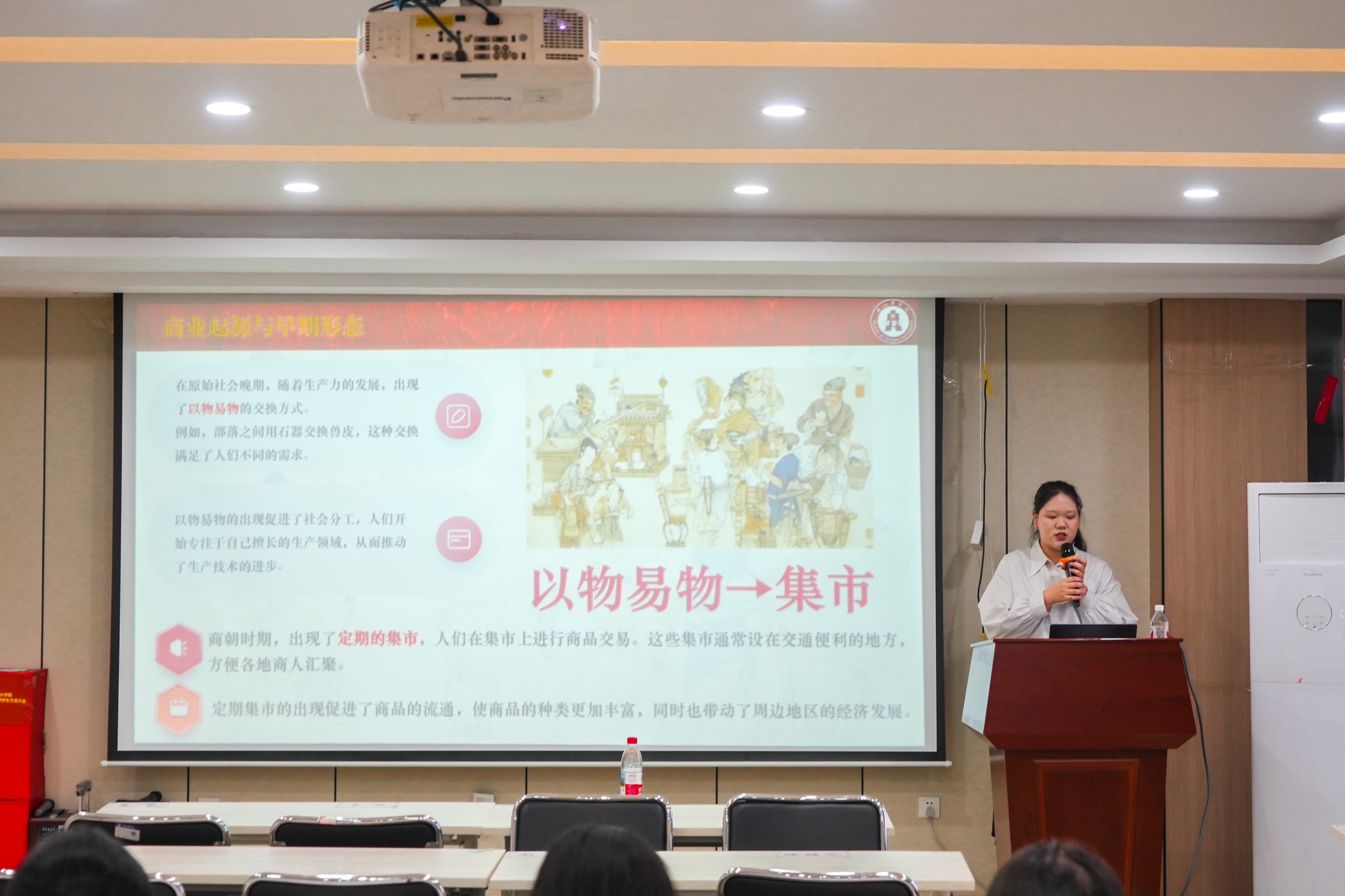 本网讯 5月28日晚,工商管理学院邀请“星火青年”大学生讲师团的毛雨晴同学开展了以“中国古代商业文化发展脉络”为主题的讲座。讲座于必赢官网北二313进行,吸引50余名学生前来学习。