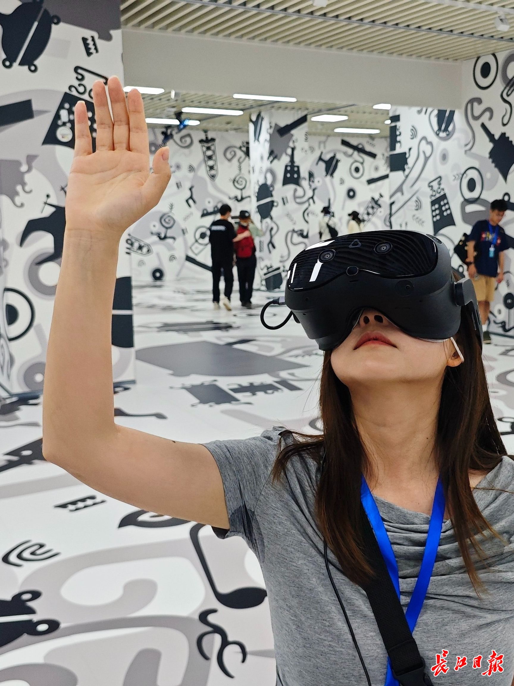 游客现场体验湖北省博物馆推出的《穿越青铜纪》VR体验项目。(长江日报资料图)