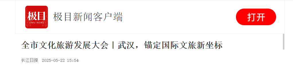 5月21日举行的全市文化旅游发展大会上,武汉市提出:要加强统筹协调,加快构建“大文旅”工作格局,汇聚建设世界知名文化旅游目的地的强大合力。