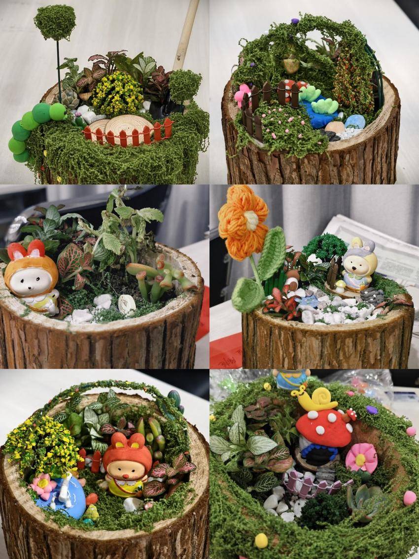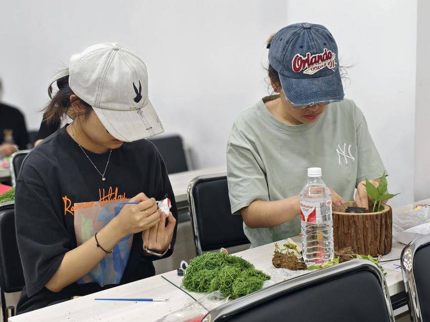 大赛首先详细介绍了比赛规则和流程,随后工作人员向各组发放苔藓、多肉等素材。在限时种植环节中,各组充分发挥想象力,利用手上的多肉植物、石子和微型摆件,打造属于自己的生态微景观作品。从构思设计到具体种植,每一个环节都彰显出选手们的精巧构思。他们巧妙地将植物、石头、摆件等元素结合在一起,营造出一个个各具特色的生态微景观世界,彰显出自己对生态美学的独特理解。