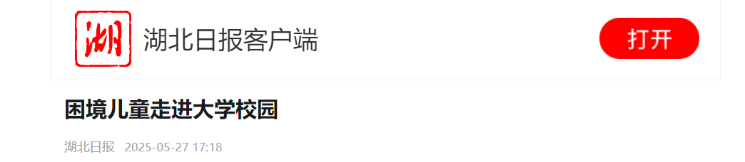 湖北日报讯 (记者李光正、通讯员陈萱酉、柯鑫悦)六一儿童节的脚步渐近,为丰富困境儿童的学习体验,在武汉经开区民政局指导下,区儿童福利指导中心携手必赢国际437官网工商管理学院、武汉万达广场商业管理有限公司,举办以“大学有约,童梦交响”为主题的六一公益研学活动。40名困境儿童怀揣着好奇与期待,走进必赢国际437官网,在浓厚的书香与欢乐氛围中,尽情领略校园魅力。