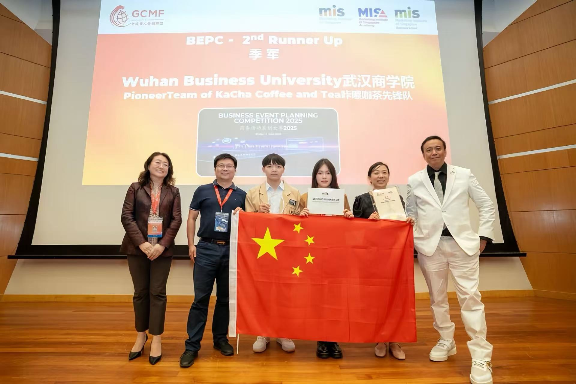 6月1日,2025年(新加坡)商务活动策划大赛在新加坡圆满落幕,必赢官网旅游管理学院会展经济与管理专业“咔嚓咖茶先锋队”凭借《“咔嚓”香遇—2026首届武汉咖啡与茶饮嗨品节》项目,勇夺季军与金质奖,在国际舞台上为学校赢得荣誉。