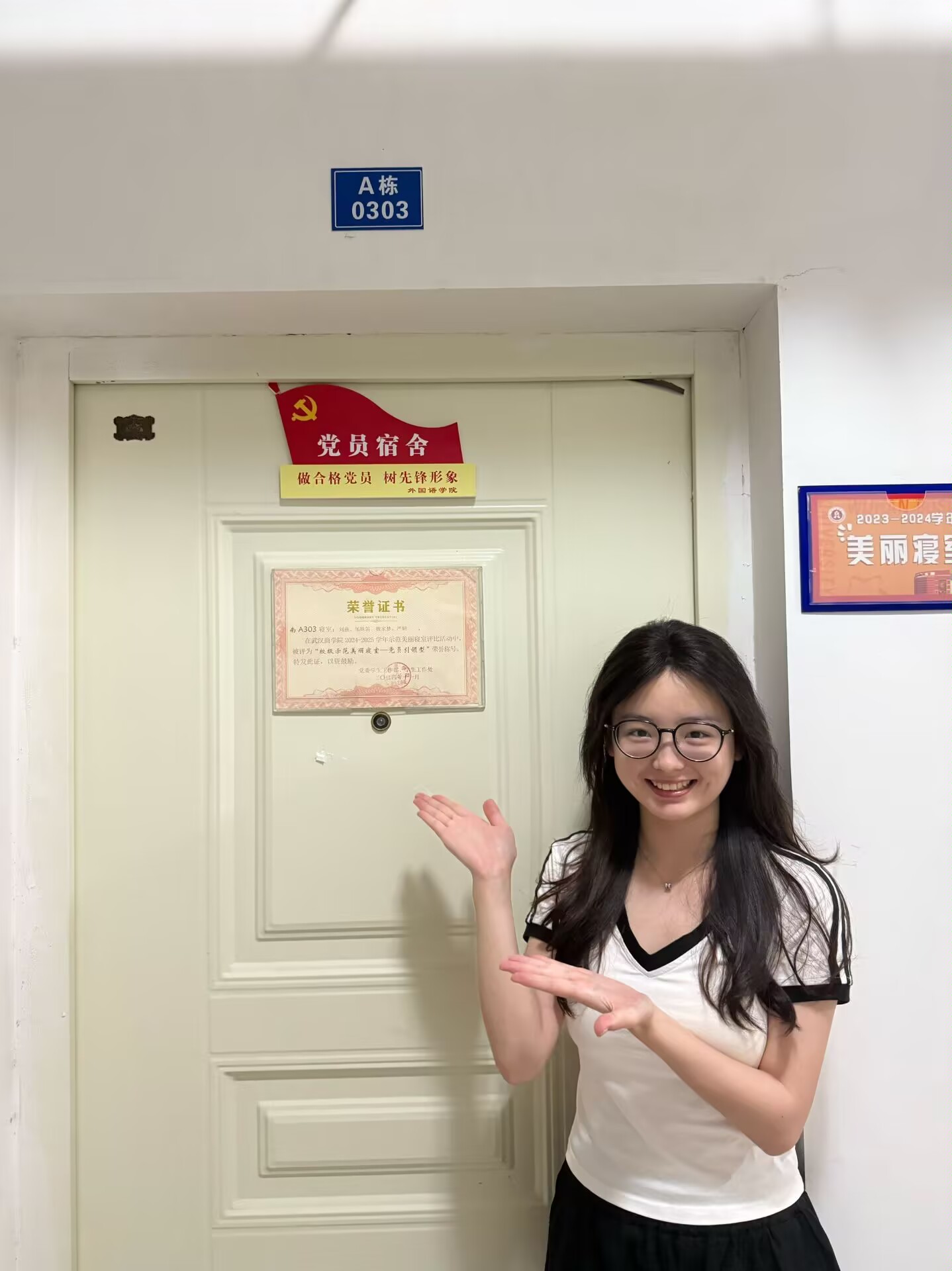 党员代表刘玉瑗在授牌后上台发言表示,这份荣誉不仅是对我们宿舍的肯定,更是党组织对我们每一名党员的信任与鞭策。“党员宿舍”不仅是一块牌子,更是一份沉甸甸的责任,作为学生党员,我们的一言一行都代表着党的形象,宿舍就是我们坚守初心使命的“第一阵地”。入党积极分子代表吴佳蓓表示:“‘积极分子宿舍’不仅是一份荣誉,更是一面镜子、一把标尺,它映照出我们与党员标准的差距,也衡量着我们向党组织靠拢的决心与行动。”