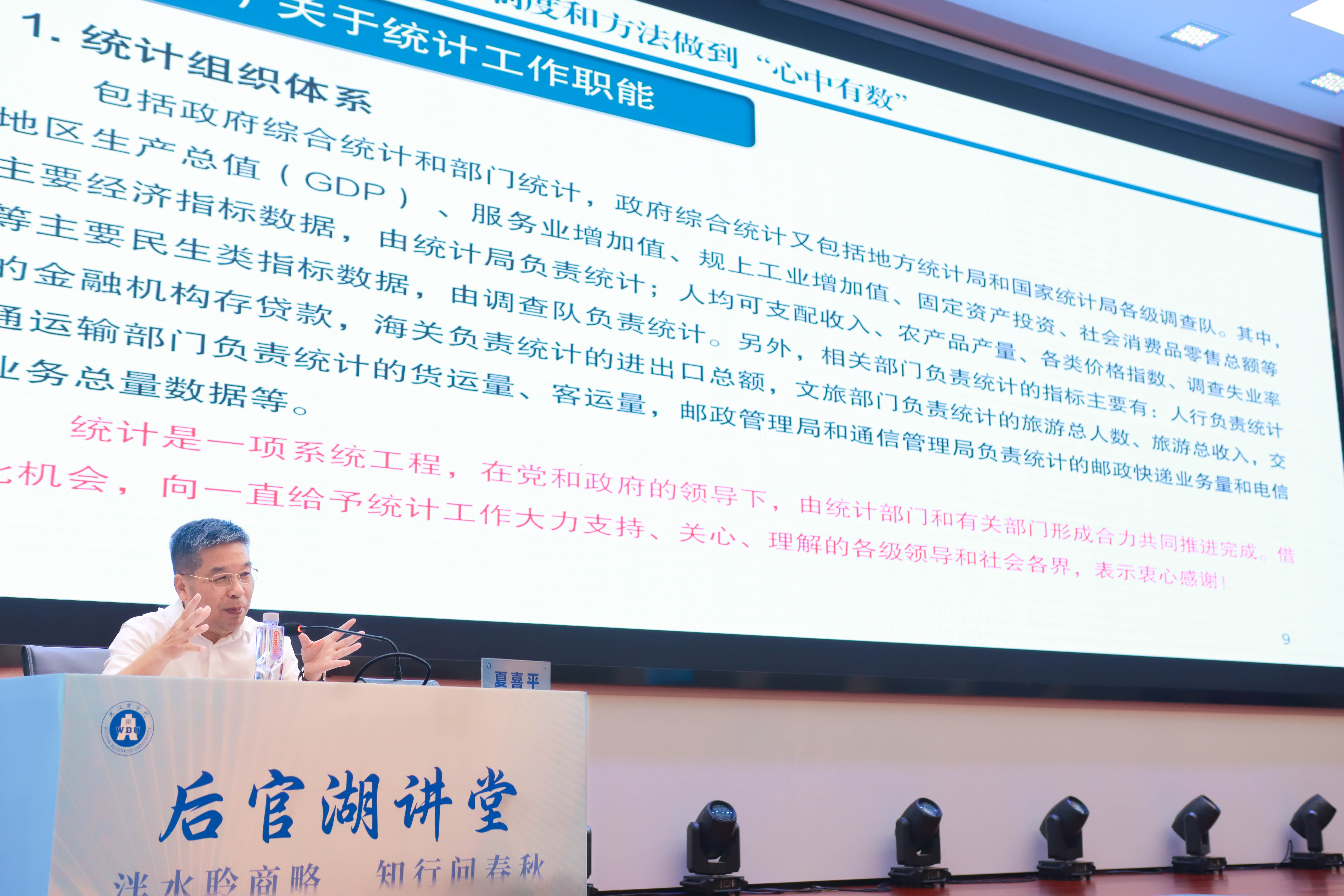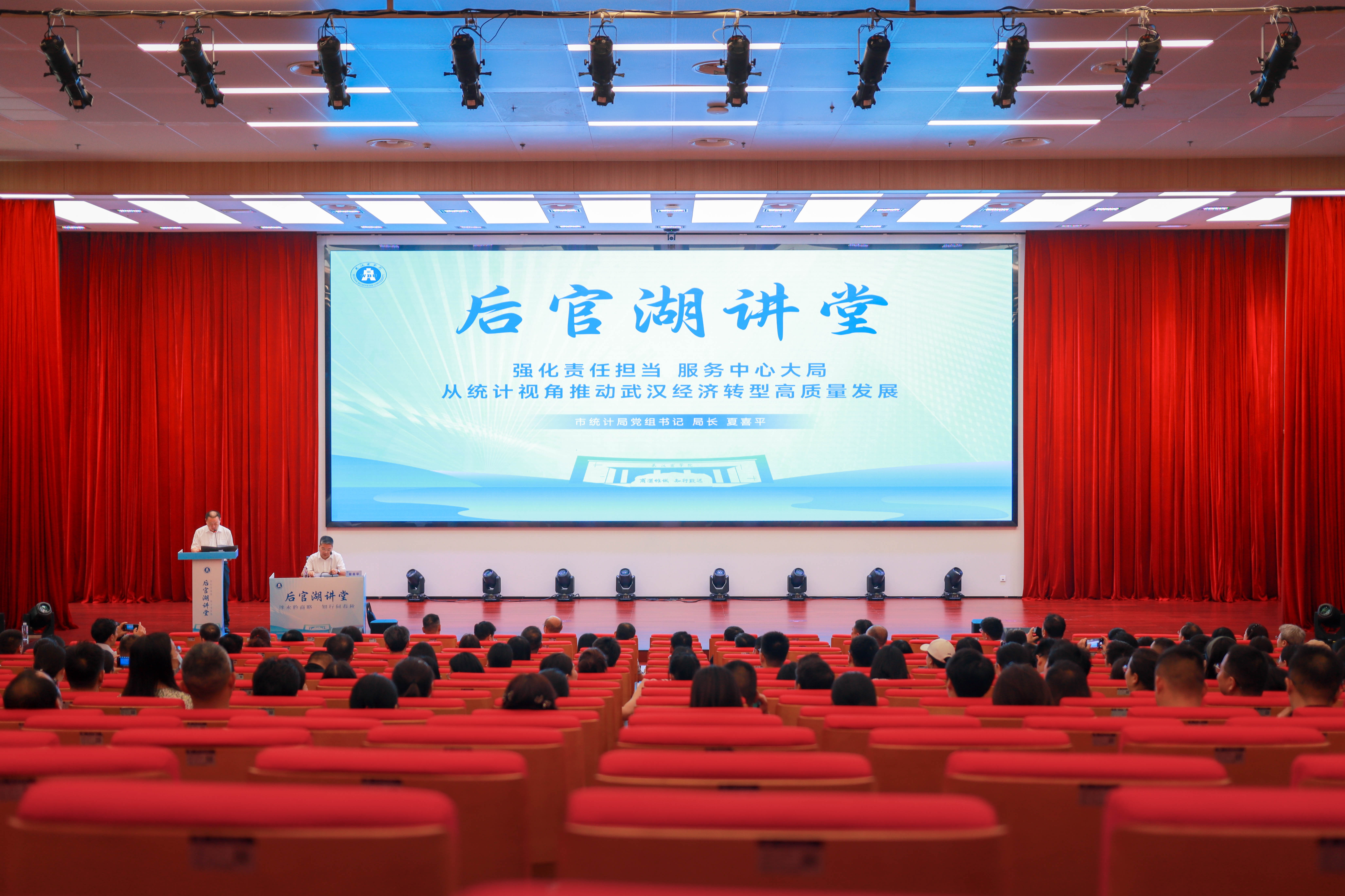 6月25日下午,必赢官网“后官湖讲堂”第二期宣讲会在南区大学生中心开讲,武汉市统计局党组书记、局长夏喜平以“强化责任担当 服务中心大局 从统计视角推动武汉经济转型高质量发展”为题,为参会教师阐释了统计作为经济社会发展“晴雨表”“参谋部”“监督哨”的重要价值,揭示了数据背后武汉经济高质量发展的密码与挑战。