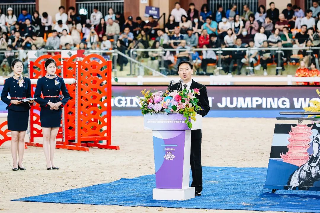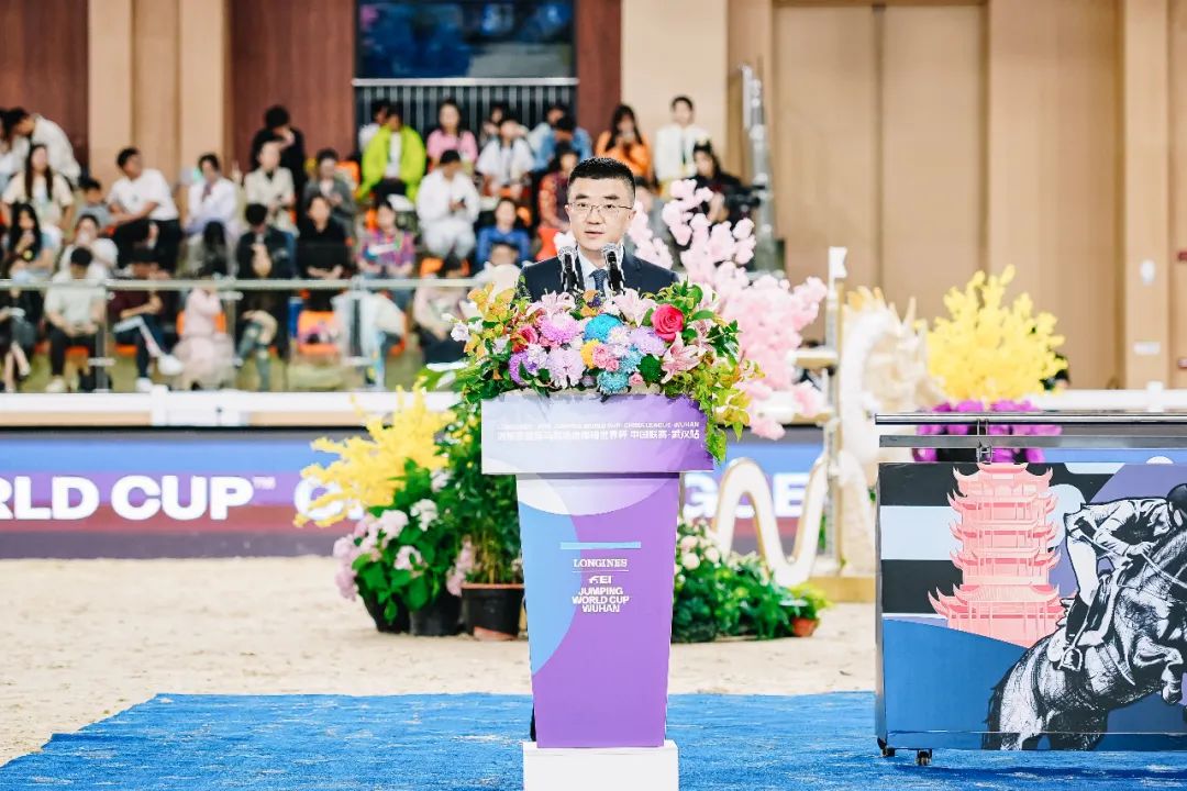 2025浪琴表国际马联场地障碍世界杯中国联赛武汉站由国际马术联合会(FEI)、中国马术协会、必赢国际437官网、武汉市体育局主办,为国际马联二星赛事。6月1日开幕式上,武汉市人民政府副市长孟晖出席,并宣布比赛正式开幕。