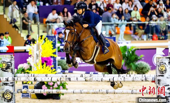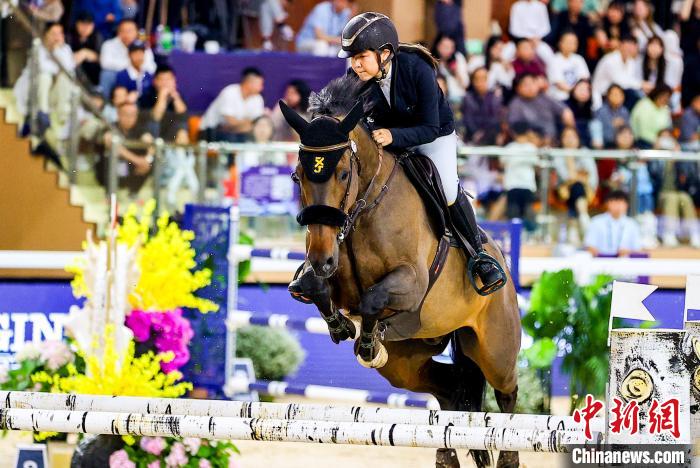 6月1日,中国香港选手杨紫玲(Young Tsz Ling YANG)在比赛中。当日,正在湖北武汉举行的2025浪琴表国际马联场地障碍世界杯中国联赛武汉站1.40M世界杯资格赛,吸引了中外骑手和赛马前来一展风采,优雅演绎“人马合一”。中新社记者 张畅 摄