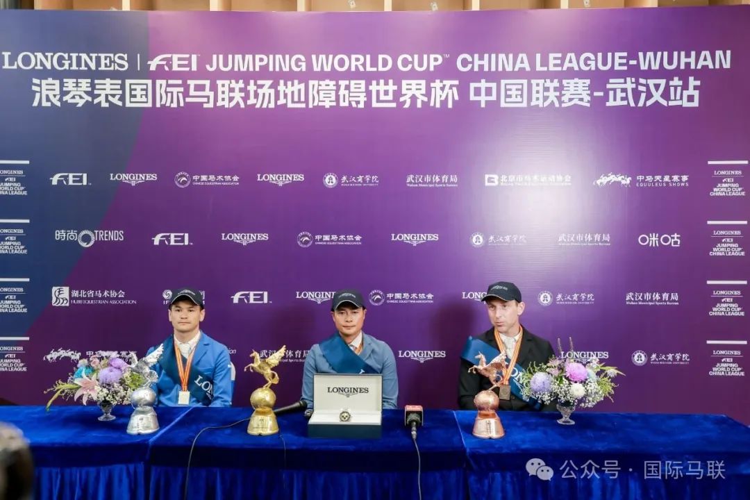 2025浪琴表国际马联场地障碍世界杯中国联赛武汉站1.45M级别浪琴表世界杯冠亚季军骑手接受采访