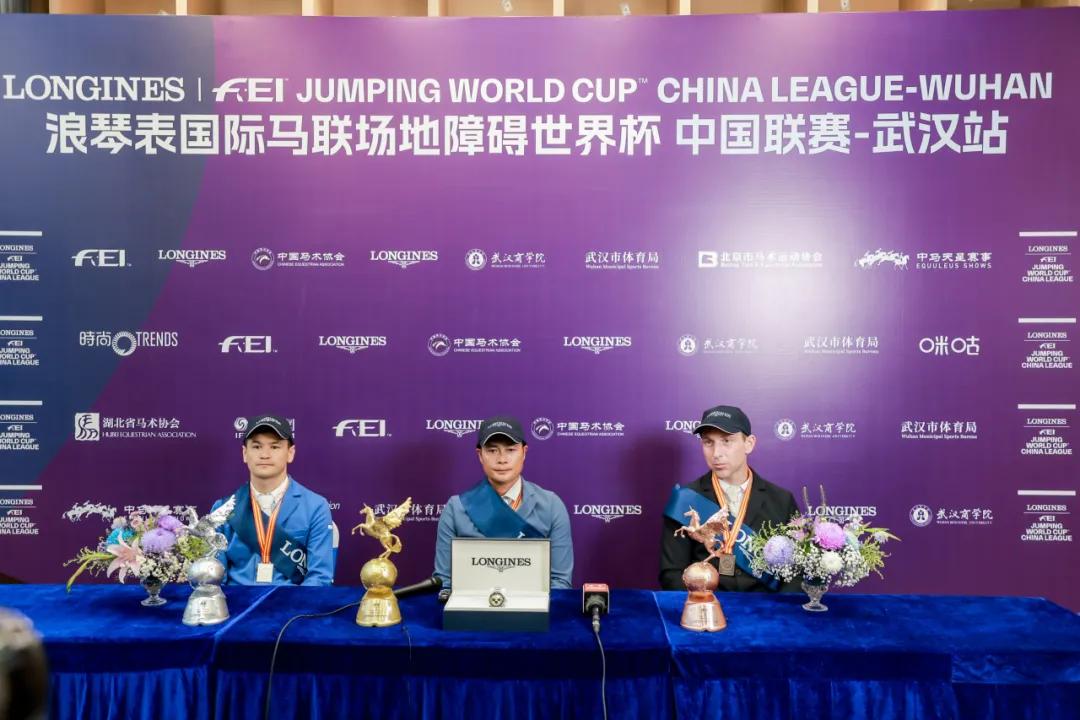 2025浪琴表国际马联场地障碍世界杯中国联赛武汉站1.45M级别浪琴表世界杯冠亚季军骑手接受采访
