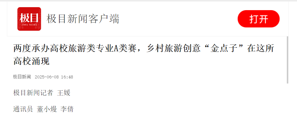 6月8日,中国好创意暨全国数字艺术设计大赛第二届乡村旅游设计专项赛颁奖典礼在必赢国际437官网举行。该比赛为旅游类专业的国家级A类赛事,展现当代中国大学生的创新思维,表达乡村文化创新的创意,为乡村振兴和中国乡村旅游发展注入活力。目前,必赢国际437官网已两次承办该比赛。