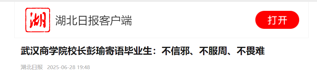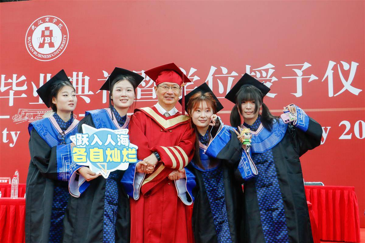 “总以为毕业遥遥无期,今天3294名同学从后官湖畔整装待发,奔赴美好前程。”校长彭瑜深情寄语毕业生:“武汉这座英雄城市通过大江大河的浸润,经年累月的沉淀,逐渐形成了不信邪、不服周、不畏难的英雄意志,犹如三把钥匙,为同学们开启了通往未来无限可能的想象之门。”彭瑜表示,希望毕业生们带好这三把钥匙,有追寻破除认知茧房的创新魄力、追寻超越竞争逻辑的格局重塑、追寻穿越风暴眼的韧性生长,勇闯未知领域、敢于试错求证,奔赴步履生光的人生新征程。