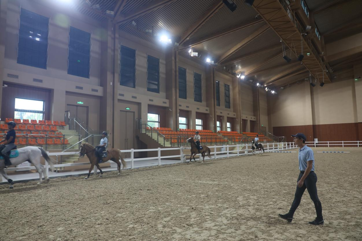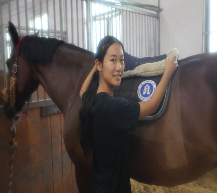 马靴里的脚早已被汗水泡得发皱,手掌磨出的茧子沾着汗水发亮,可只要跨上马鞍,起坐、压浪、停止,每一个动作都力求精准。骑术教师熊露华带着大家一遍遍打磨动作,沙哑的嗓音里满是坚定:“马术不等人,夏天的热是考验,也是咱们赶超的机会。”他的声音早已嘶哑,可示范起动作来,腰杆挺得笔直。