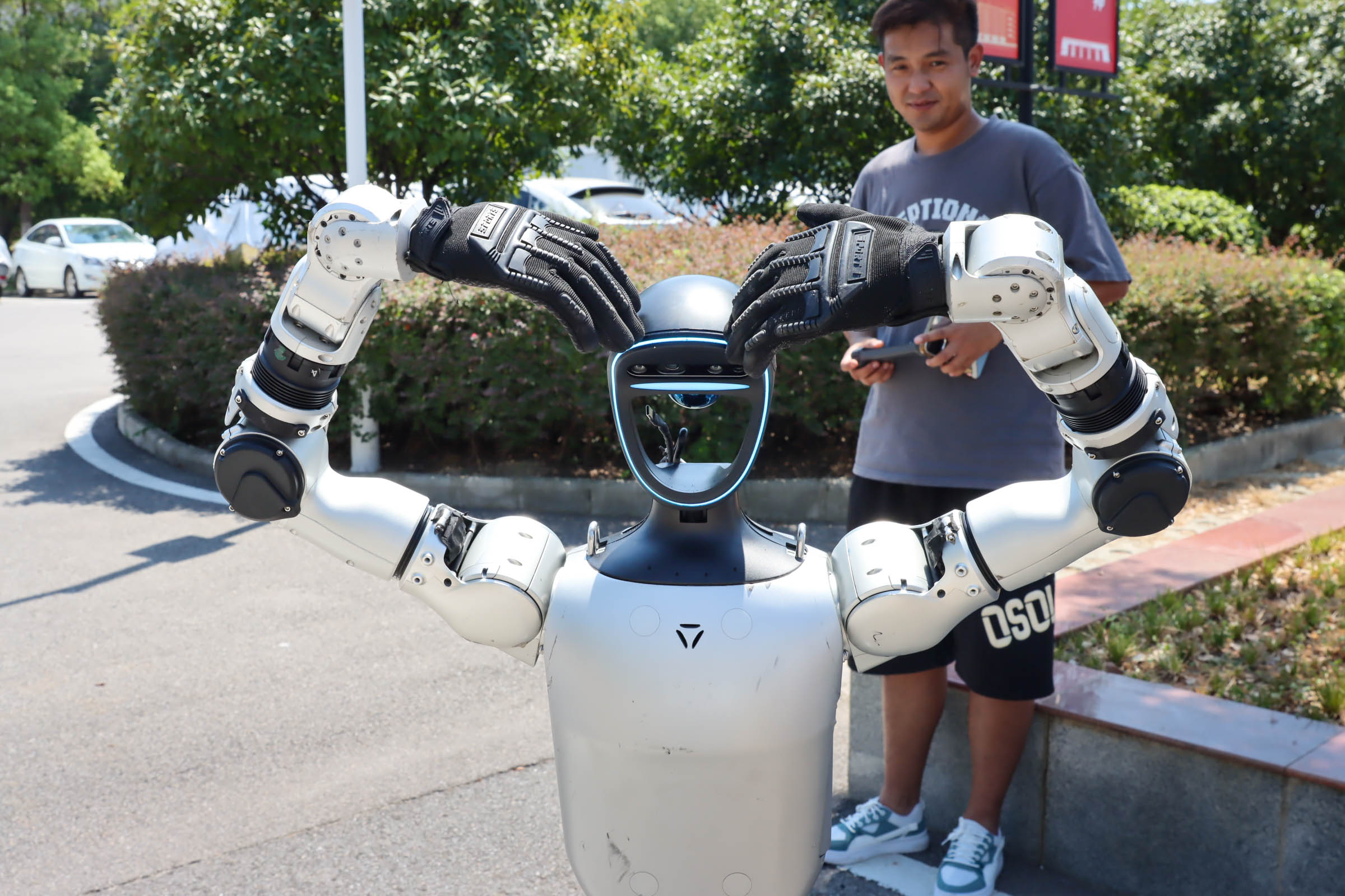 “春晚同款!没想到开学现场居然能和它握手!”“无人机表演好精彩,听说有无人机的微专业可以报名学。”8月28日,机电工程学院迎新点前,两架大型无人机挂着“以梦为马,不负韶华”的飘带欢迎2025级新生,春晚同款机器人挥手迎新,吸引了众多新生及家长驻足体验。