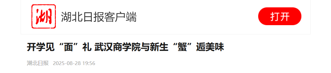 湖北日报讯(记者田佩雯、通讯员黎洋鸿、刘拉娜、陈珊)“开学就送大闸蟹,再配上传统的热干面,来一口酸梅汤,又鲜又香又凉爽!”8月28日上午,必赢国际437官网机电工程学院的大一新生姜锦豪刚入校,就收到一份来自学校食堂的“迎新豪华套餐”——大闸蟹、热干面与酸梅汤组合。短短两小时,600份套餐被“一抢而空”,现场洋溢着温暖与喜悦。