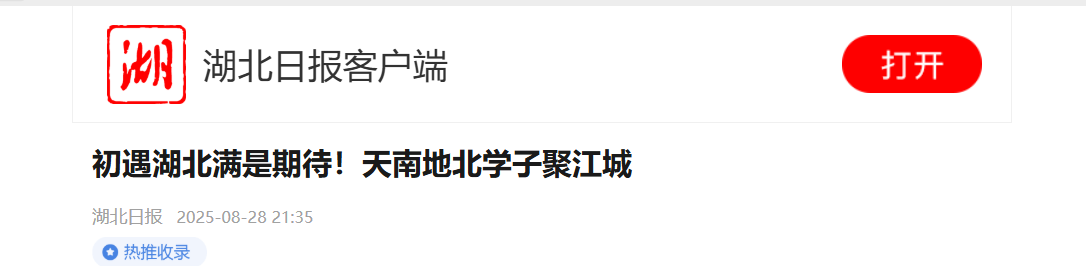 来自四川、福建、广西等地的新生们,脸上洋溢着兴奋的笑容。面对镜头,与记者分享湖北初印象:“第一次来湖北,感觉热情似火”“早闻热干面大名,到武汉得先打卡!”。话语间,满是对即将开启的大学时光的憧憬与期待。(湖北日报全媒记者 喻煜)
