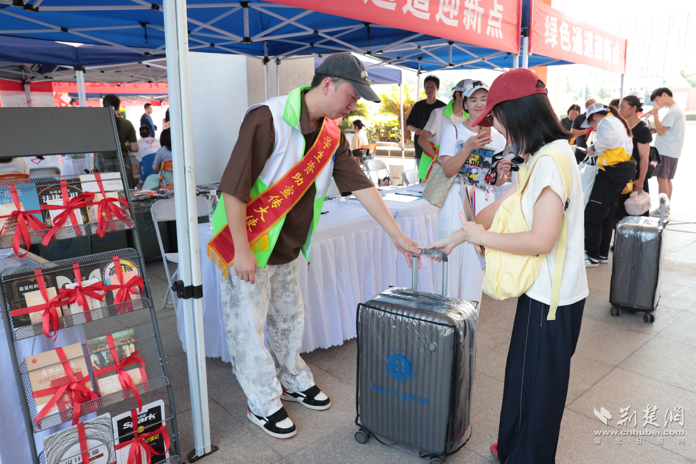 “去年办理绿色通道入学后,我向学校提出了这个建议,没想到今年改变这么大,很实用。”会计学院审计学专业大二学生周瑞说。“以前总听说绿色通道是帮新生解决困难的,没想到今年的礼包这么全,现场还有毕业的学长学姐捐赠的书,里面夹着一张明信片,让我觉得有一种传承的力量。”2025级服装与服饰设计一班鄢攀刚领到礼包和书籍,十分感动。