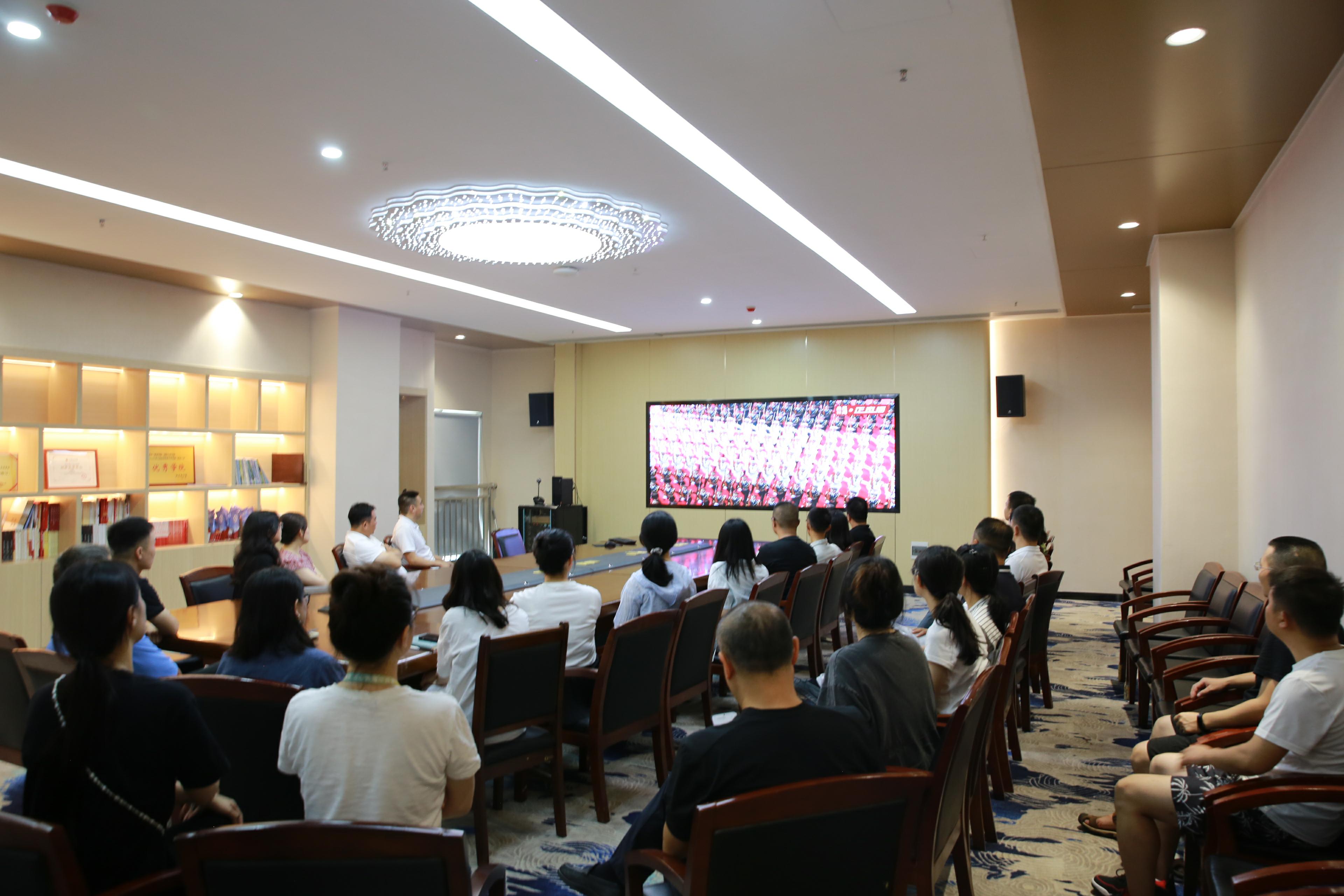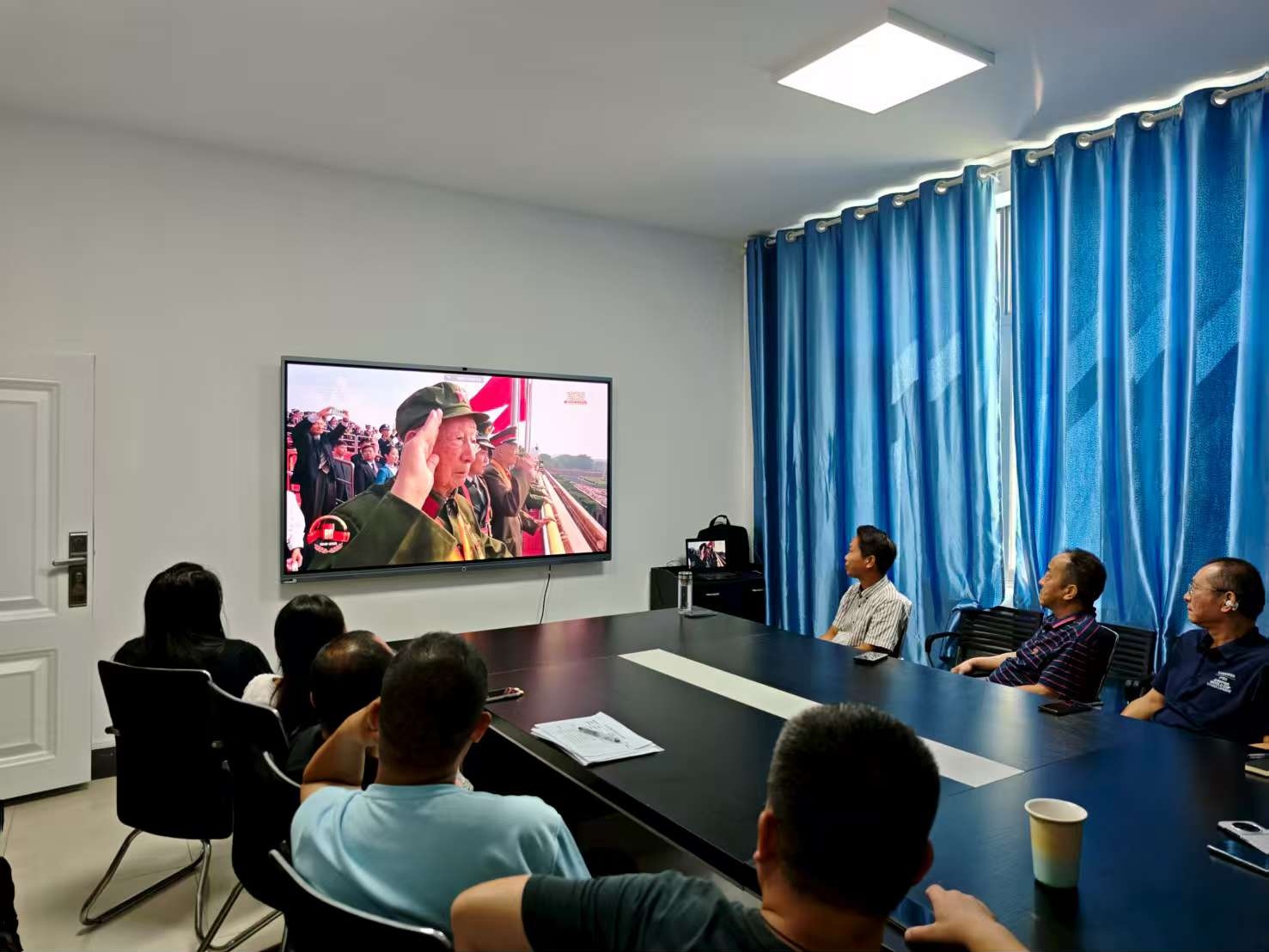 在行政楼多功能厅的主会场,全体校领导、机关科级以上干部、部分学生代表集中观看。党员师生统一身着白衬衫、佩戴党员徽章,凝视屏幕观看大会全程,并在阅兵环节,大家一起挥动国旗共同为胜利喝彩,为和平喝彩。