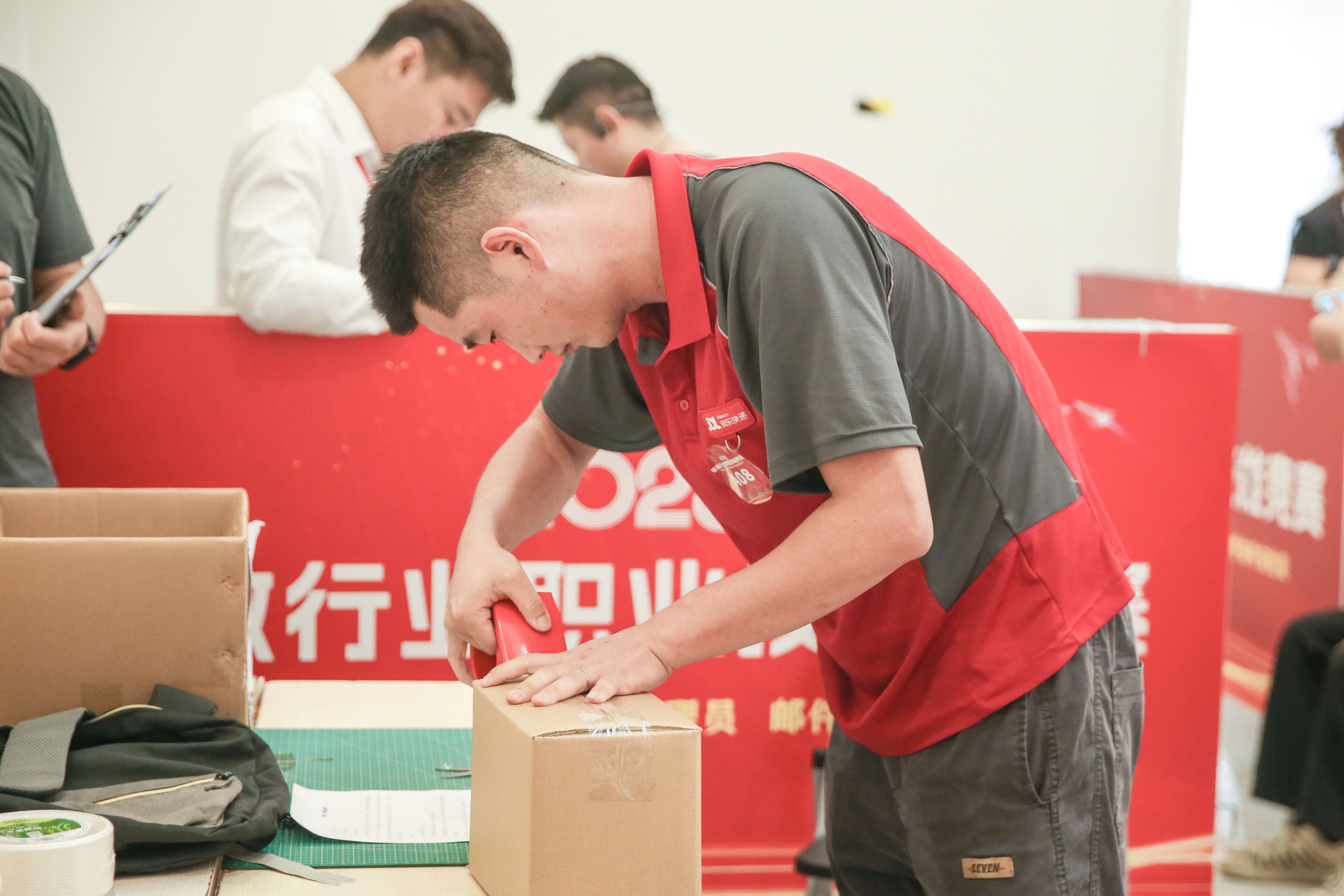 科学规范收寄、快速科学分拣打包、沉着冷静设计派送路线……赛场上,各家企业的快递员们身穿各色工作服紧张而熟练地进行各项竞赛项目操作。多物品收寄项目中,选手们进入场地,识别挑出禁限寄物品;按照收寄规范,特殊物品特殊包装;打包快件,进行称重及资费核算;制作和粘贴运单,完成快件寄出。选手们动作娴熟、操作规范,充分展示出扎实的专业技能、良好的职业素养和昂扬的拼搏精神。