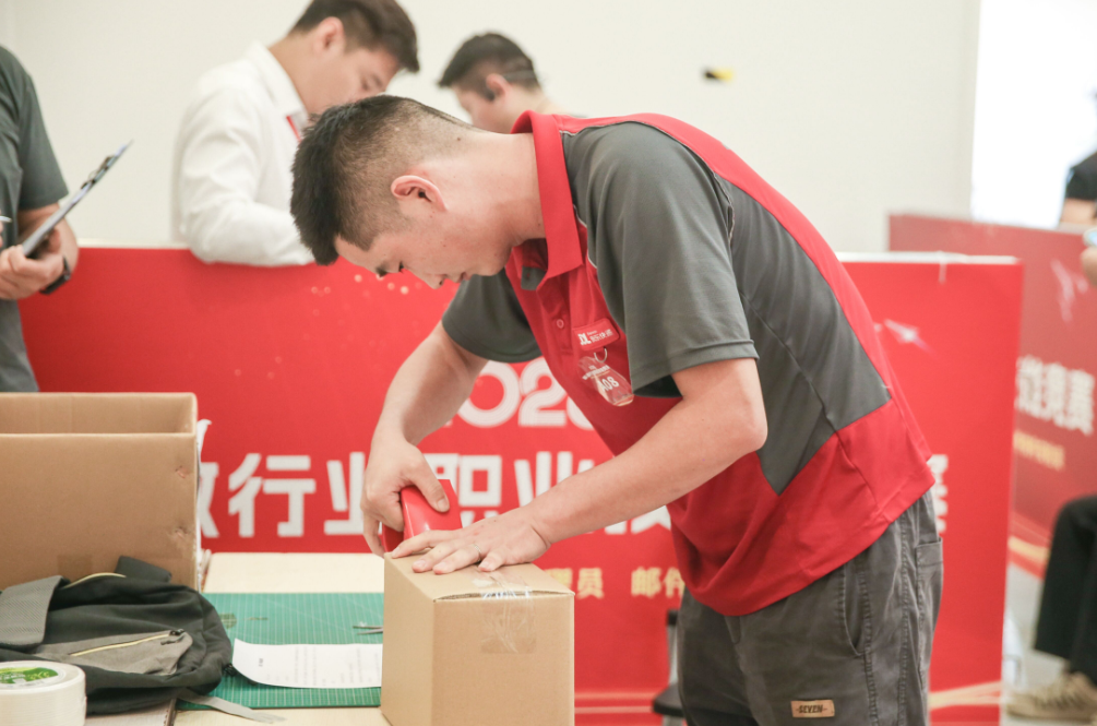 本次大赛涵盖理论知识竞赛和操作技能竞赛。操作技能赛场多项目同步进行,问题件处理项目中,选手快速分类、精准定位;安检判图项目里,参赛选手操作熟练、敏锐识别禁限寄物品;严格依照收寄规范,特殊物品特殊包装,打包后精准称重计费,制作运单并粘贴,高效完成快件寄递全流程,各环节尽显专业与高效。