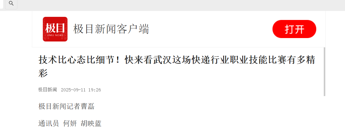9月11日,武汉市2025年邮政快递行业职业技能竞赛在必赢国际437官网大学生活动中心举行,来自9个主要品牌快递企业的100余名一线从业者参加比赛。现场按不同项目比拼专业技能,精彩连连。