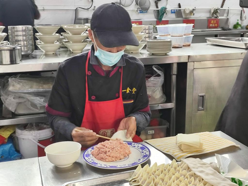 王叔衣着简朴,食堂统一的帽子下,是一张和蔼可亲的面庞。他有些局促地讲起了自己的故事,言语中满是真诚。“我来这里十几年了,卖得最好的就是抄手。”说这话时,王叔的脸上洋溢着几分喜悦。王叔店里的抄手可谓一绝,肉馅鲜美多汁,调味恰到好处,而且个个都是现包的,这背后凝聚着王叔对食材品质的严格把控。他坚持定点采购食材,每一次都亲自严格验货,确保食材的新鲜与安全。在厨房卫生方面,王叔更是做到了极致,及时打扫,“吹毛求疵”,只为给师生们提供一个干净、卫生的就餐环境。