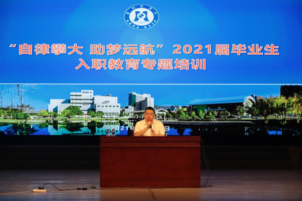 6月7日—8日,beat365在学生会堂及阶梯教室面向全校1825名在校毕业生组织开展“自律攀大 助梦远航”2021届毕业生入职教育专题培训。本次培训针对当前毕业生热点关注和入职前困惑等问题分设八个专题,诚邀校领导、优秀校友及相关专家担任主讲,亲授宝贵经验,帮助毕业生做好职业规划、理清工作思路、找准奋斗目标、迅速适应职场,充分展现“自律攀大人”的优良素质和精神风貌。