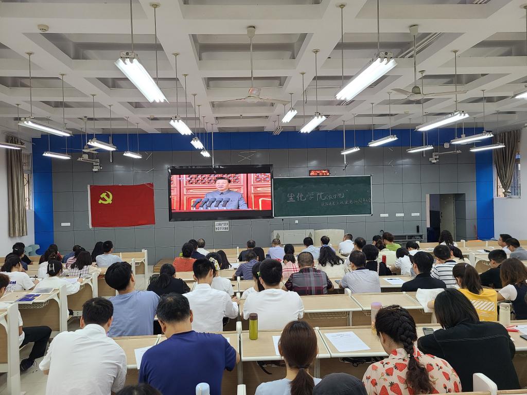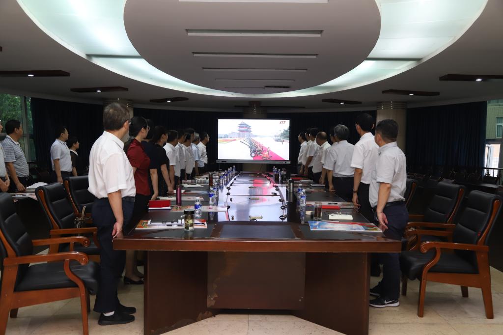 在校领导班子、师生代表集中收看大会盛况,各学院、各单位组织师生通过电视、网络等媒体在教室、会议室、办公室、宿舍收看庆祝大会直播。直播期间,当十艘战机拉出十道绚丽彩烟划破天空时,观看人员肃然起敬,满怀自豪;当国旗护卫队铿锵走来时,观看人员聚精会神,满怀敬仰;当国歌奏响时,观看人员齐声歌唱,满怀激情;当习总书记深情讲话时,观看人员全神贯注,充满自信,现场掌声不断,气氛十分热烈。
