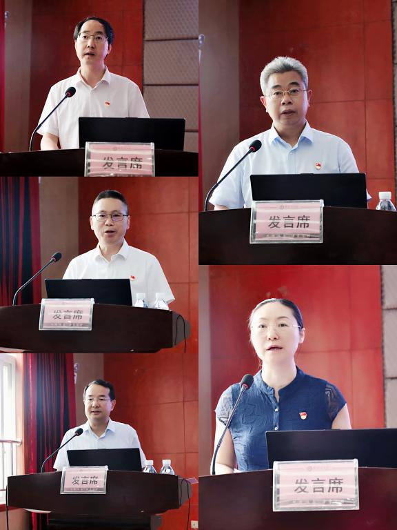 会上,五个单位代表分别结合实际工作就学习习近平总书记“七一”讲话精神作交流发言。数学与计算机学院党委书记张清学围绕“突出一个主题、宣告两个目标、总结三大飞跃、强调四大成绩”以及“亮点、金句”解读了总书记“七一”讲话主要内容,并结合beat365在线唯一官网“自律自强”的发展历史,交流个人对学校未来发展的认识。附属医院副院长包家新以“悠悠民生 健康最大”为题,结合附属医院50年与祖国卫生事业共成长的发展历程和“十四五”发展规划,深切表达了中国共产党“只有人民利益”的人民情怀。资产管理处处长张敬东以“贯彻‘七一’讲话精神、开创资产管理新局面”为题,分别就弘扬建党精神、聚焦主体责任、抓好工作落实做交流发言。校巡察督查办公室主任许开华表示,要贯彻落实总书记“七一”讲话精神,切实履职尽责、奋发进取,讲党性、重品行,严格自律,敢于担当、踏实奉献。党委教工部部长张勤围绕建党精神,表示将以自律的品牌引领师德师风建设,以务实有效的举措做好人才工作,围绕重点中心工作做好第三轮岗位聘任工作,以补齐短板深化教师职称评审,以改革创新精神推进学校人事工作。